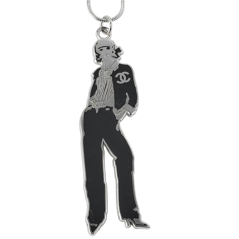 CHANEL Mademoiselle 03P Pendant Necklace by CHANEL delivers timeless elegance with a bold silver x black contrast, perfect for elevating refined evening looks.