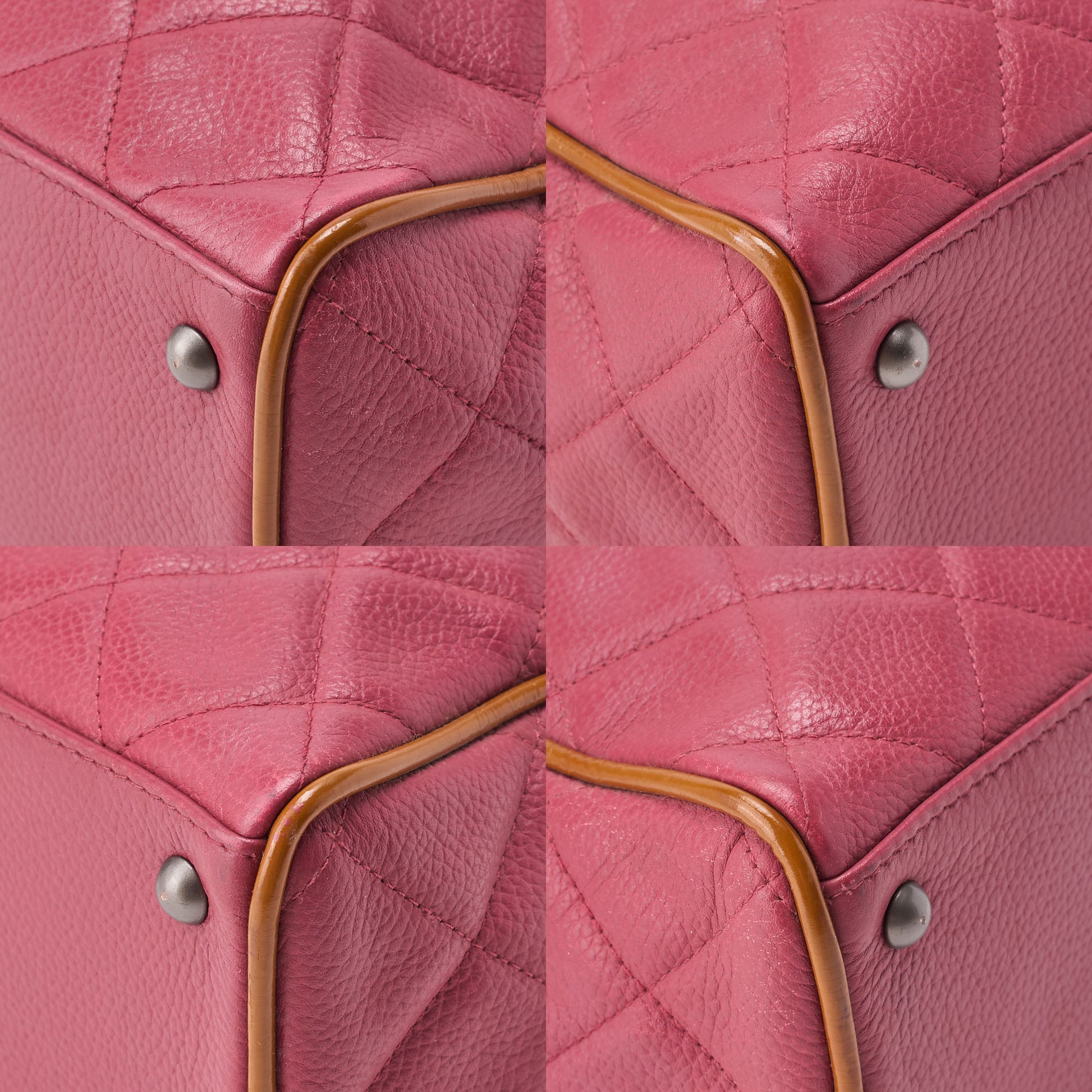 CHANEL Handbag Boston Bag Caviar Skin x Enamel Matelassé Coco Mark Rose Pink x Beige Silver-Tone Hardware, Pre-Owned