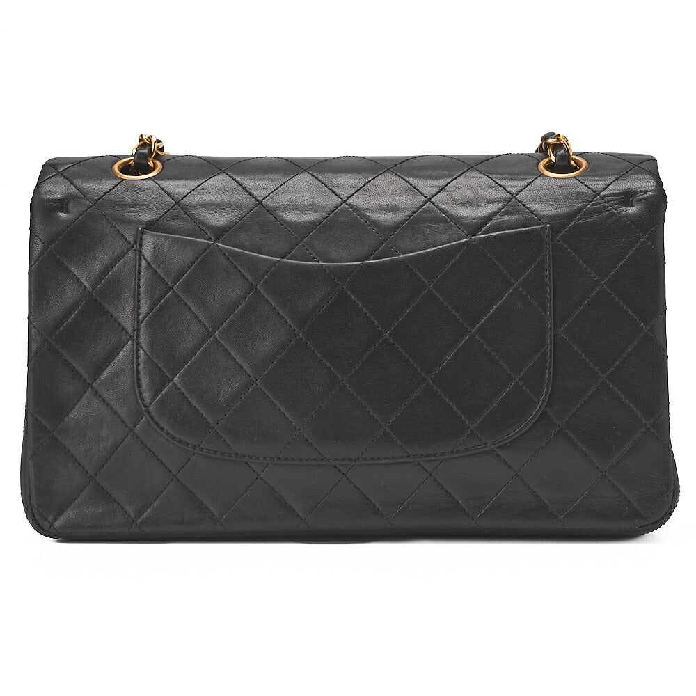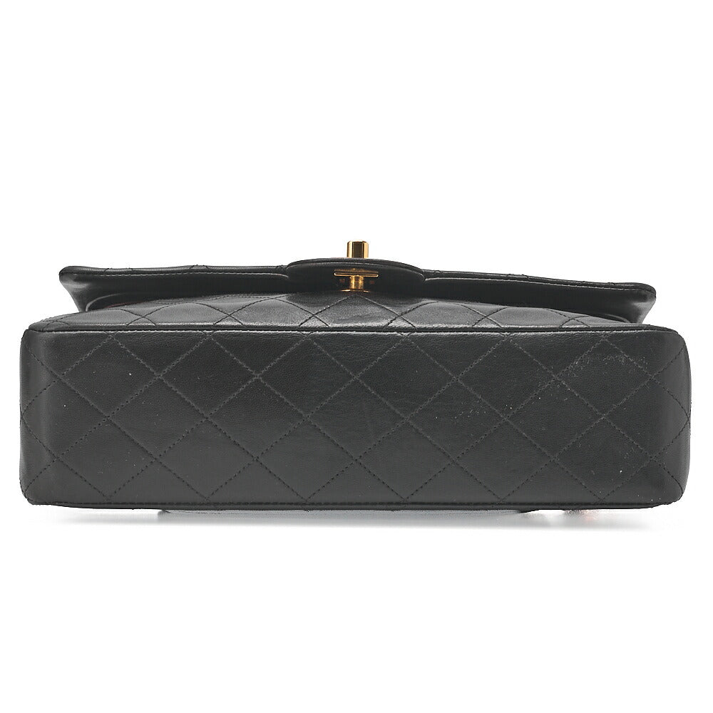 CHANEL Lambskin Matelasse W Flap 25cm Chain Shoulder Black Gold-Tone Hardware, Pre-Owned