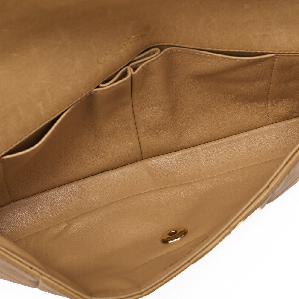 CHANEL Chocolate Bar Turnlock Chain Shoulder Lambskin Beige Gold-Tone Hardware, Pre-Owned