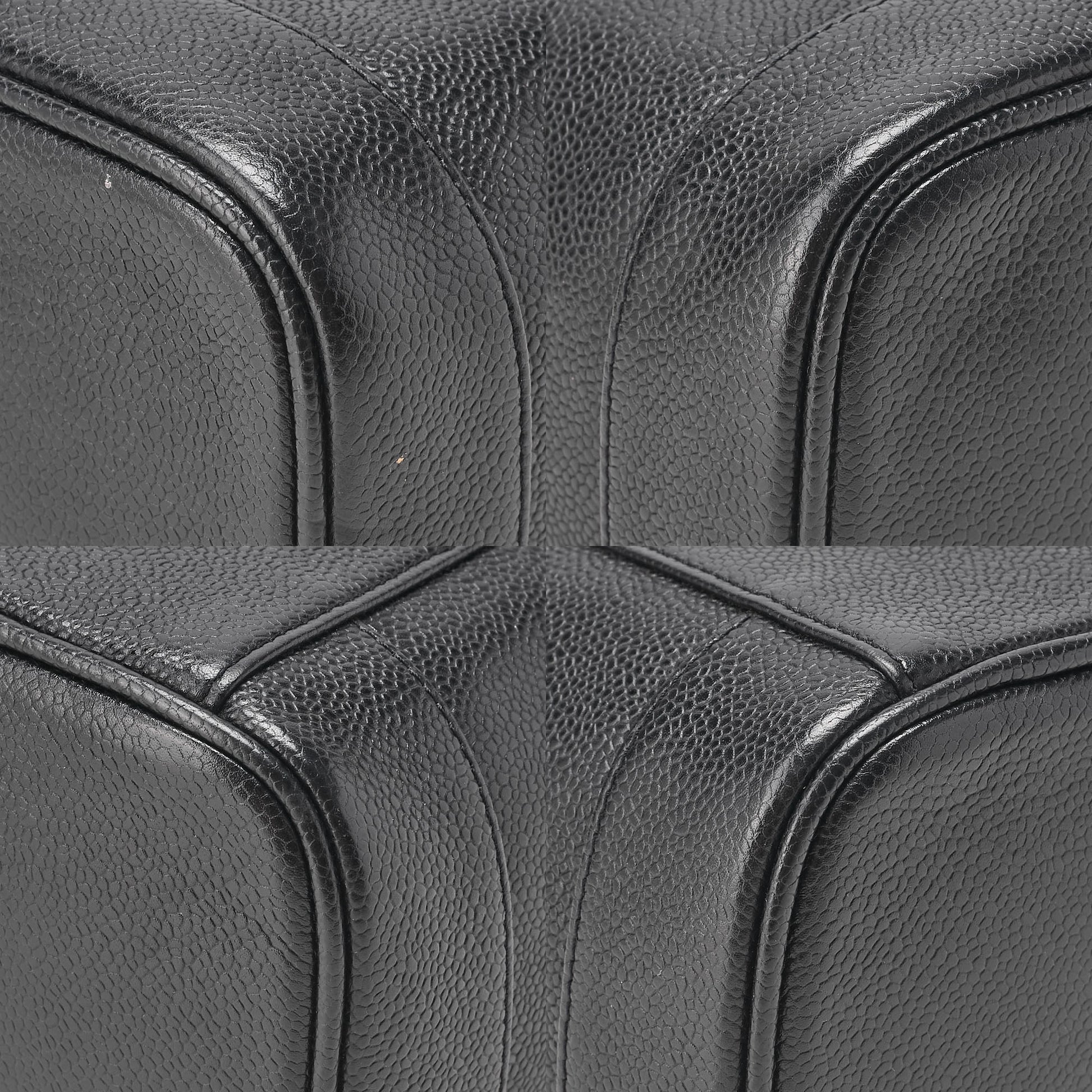 - Material and finish: Caviar-grain leather in black with gold-tone hardware