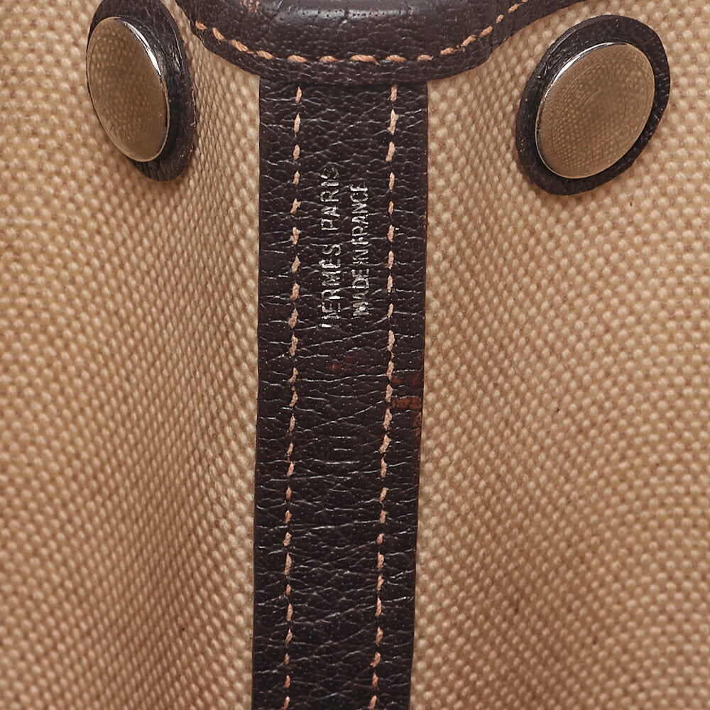 HERMES Garden Party TPM Bag Tooise Ivory x Brown Silver-Tone Hardware, Pre-Owned