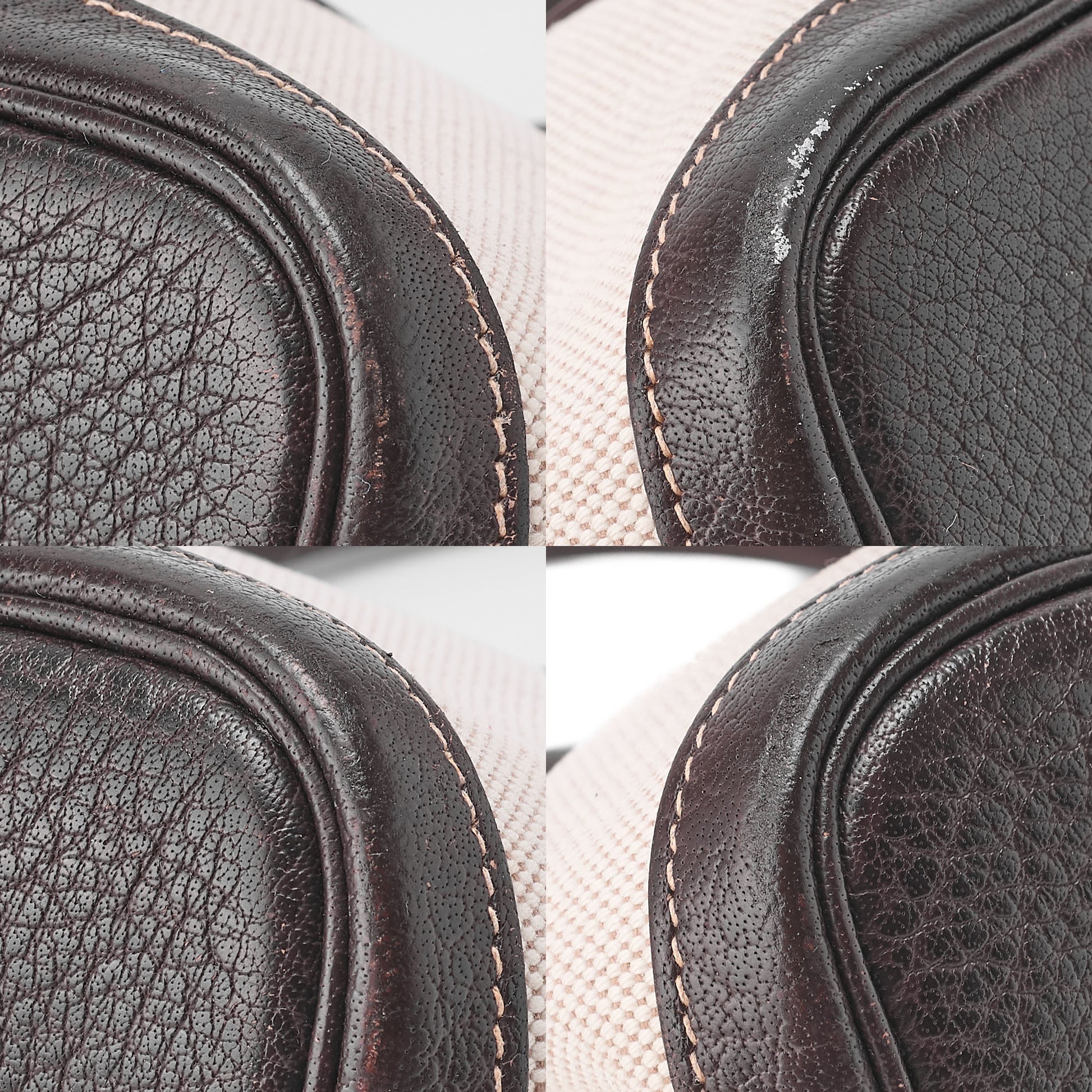 - Condition notes: External state shows wear typical of vintage pieces (handle rubbing, cracking, staining, surface smudging); interior shows mid-level color wear.