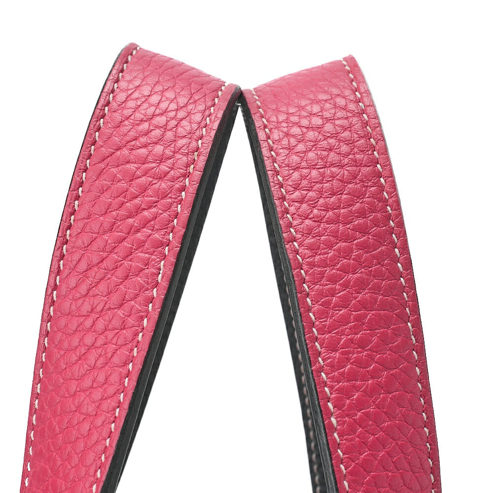 This bag combines Hermes’ enduring design with practical everyday use. The compact silhouette carries your essentials while the two-tone Brunuit and Framboise palette pairs with a wide range of outfits. Clemence leather offers a soft yet durable feel, and the silver-tone hardware adds a refined touch. Includes two Cadena keys for the lock, enhancing security and authenticity. As a pre-owned piece, it offers sustainable luxury with a storied heritage that elevates both casual and polished looks.