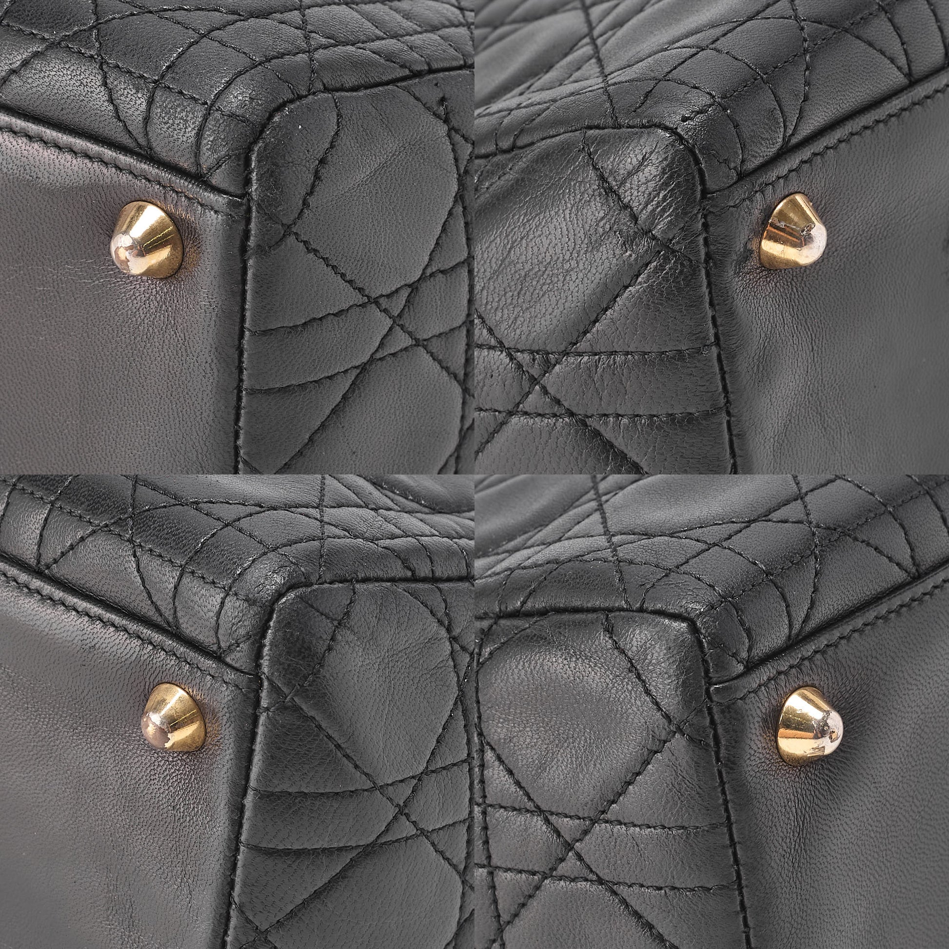 Dior Lady Dior Canage Handbag 2way Lambskin Black Large Size Gold-Tone Hardware, Pre-Owned