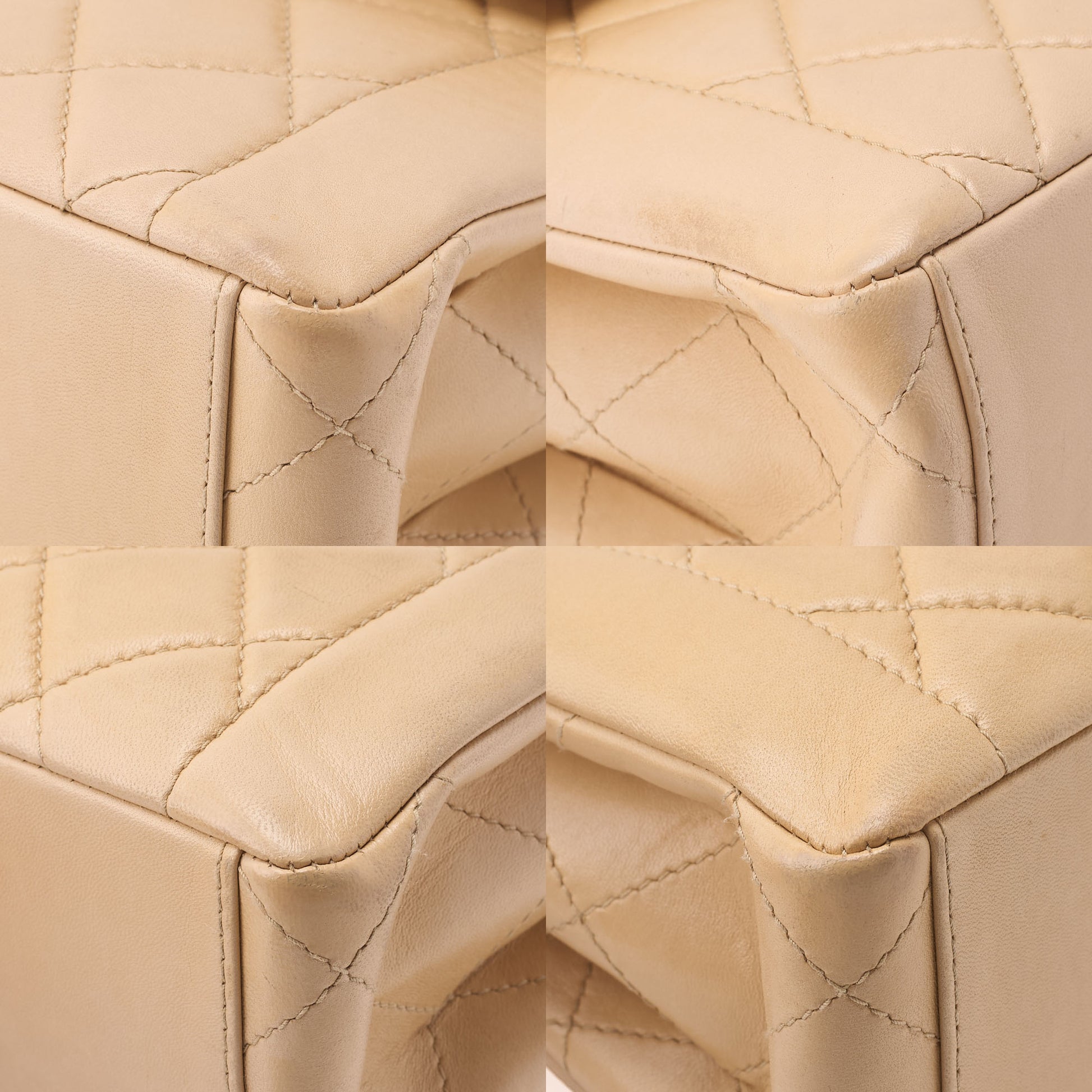 - Color & hardware: Beige with gold-tone fittings