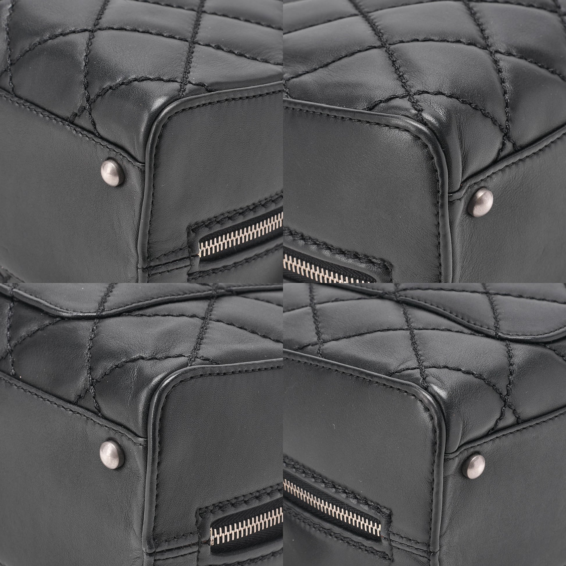 CHANEL Calf Wild Stitch Matelasse Coco Charm Hand Tote Bag Black Silver-Tone Hardware, Pre-Owned
