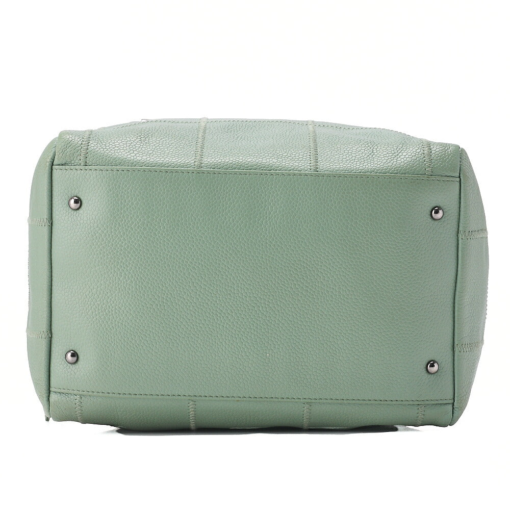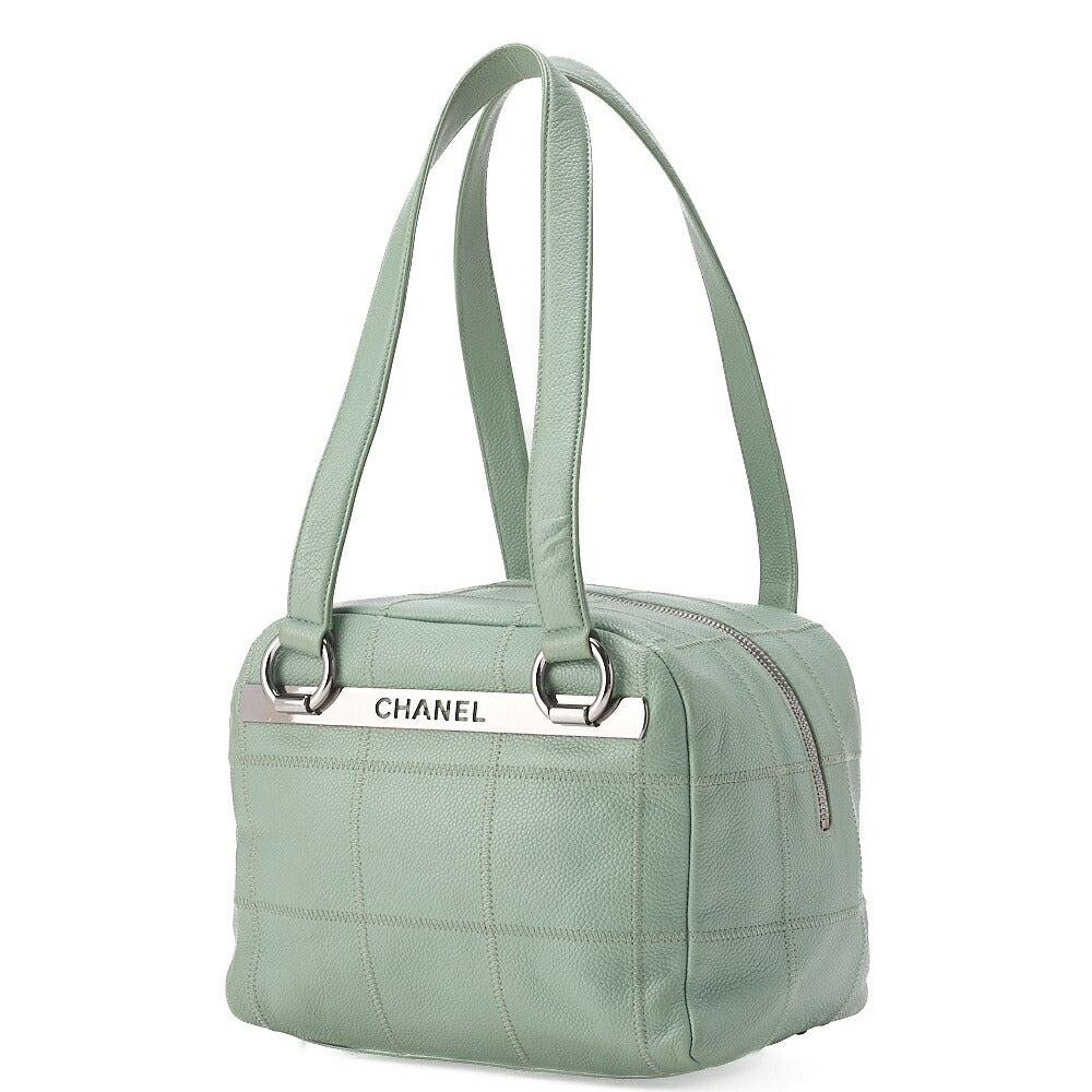 CHANEL Tote Bag Chocolate Bar Logo Caviar Skin Mint Silver-Tone Hardware, Pre-Owned