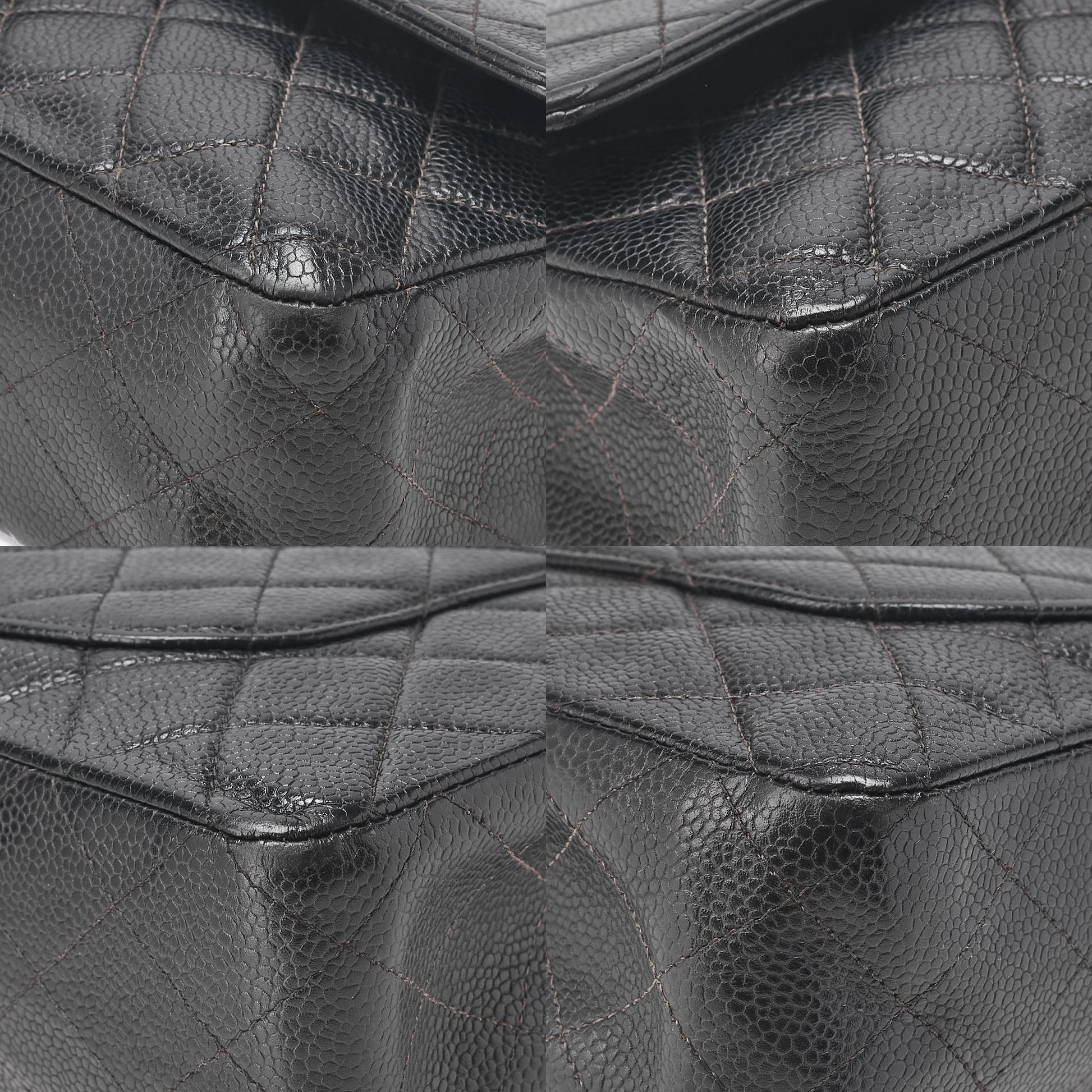 CHANEL Matelasse Turnlock Double Flap 25 Chain Shoulder Bag Caviar Skin Black Silver-Tone Hardware, Pre-Owned