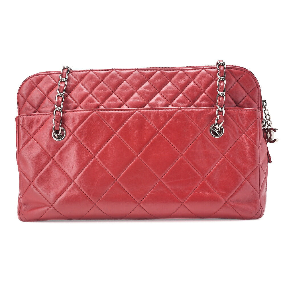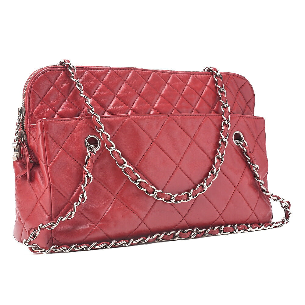 CHANEL Matelasse Coco Charm Chain Shoulder Bag Vintage Calf Red Silver-Tone Hardware, Pre-Owned