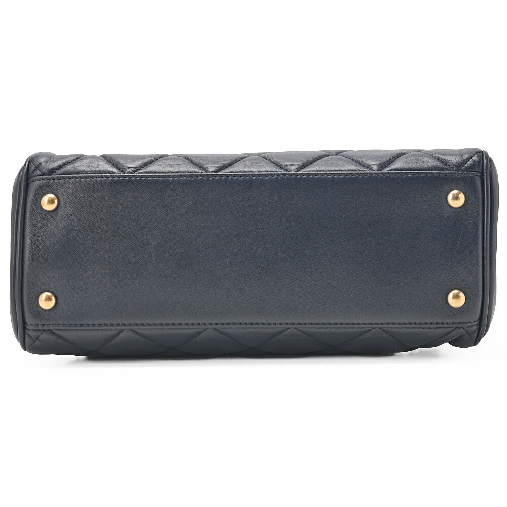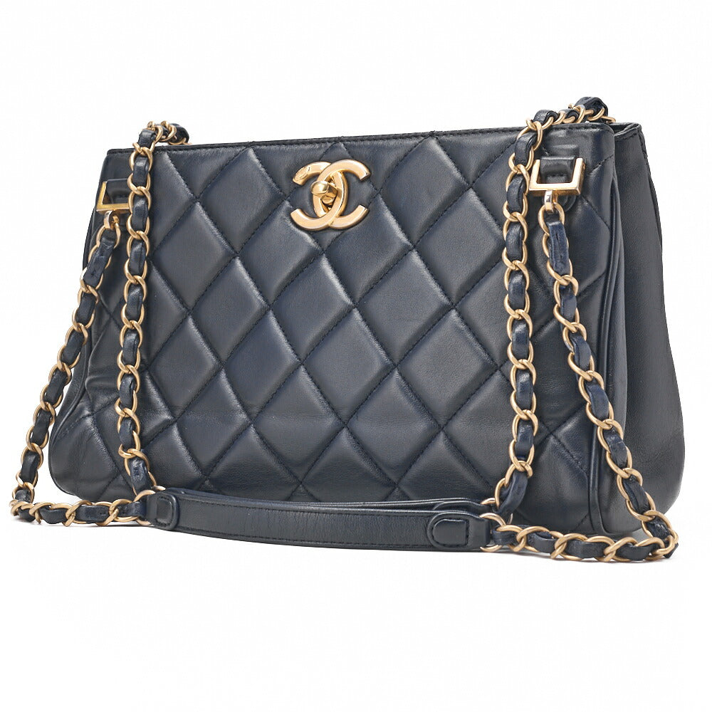 CHANEL Chain Shoulder Matelassé Bicolore Calfskin Navy Gold-Tone Hardware, Pre-Owned