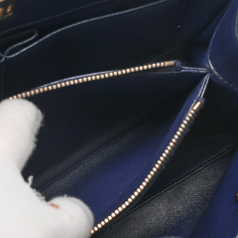 - Material & color: Calfskin with Matelassé quilting in Navy, accented by gold-tone hardware