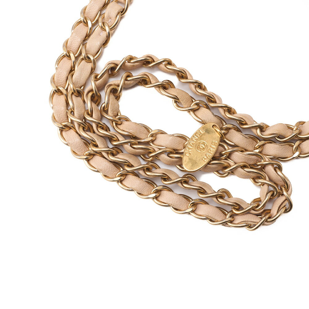 - Material: Calfskin leather in Beige with gold-tone hardware