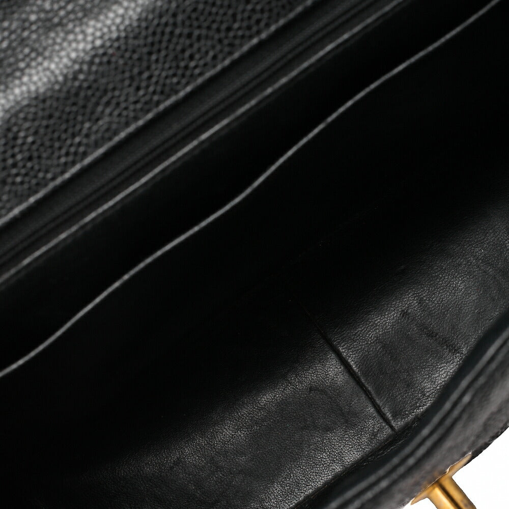 CHANEL Chain Shoulder Bag Square Turnlock Caviar Skin Black Gold-Tone Hardware, Pre-Owned
