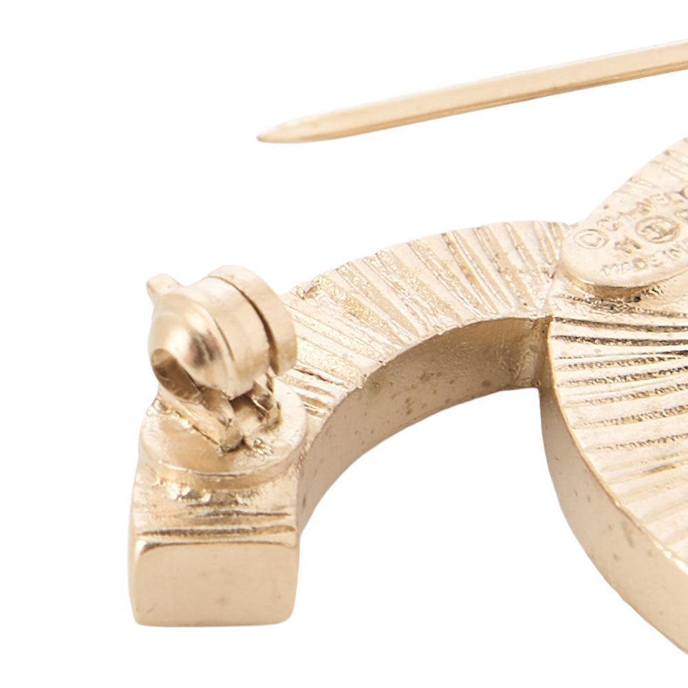 Timeless CHANEL Coco Mark Pearl Brooch, a pre-owned piece that blends a faux pearl centerpiece with gold-tone hardware. Ideal for Chanel lovers seeking a touch of classic elegance on lapels, collars, or scarves.