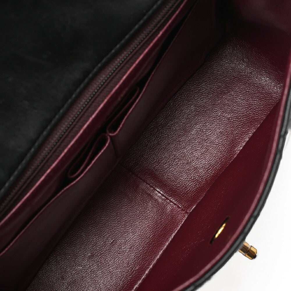 CHANEL Chain Shoulder Bag Mini Matrasse 20cm Lambskin Black Single Flap Turnlock Gold Fittings Women's [Used] [Free Shipping]