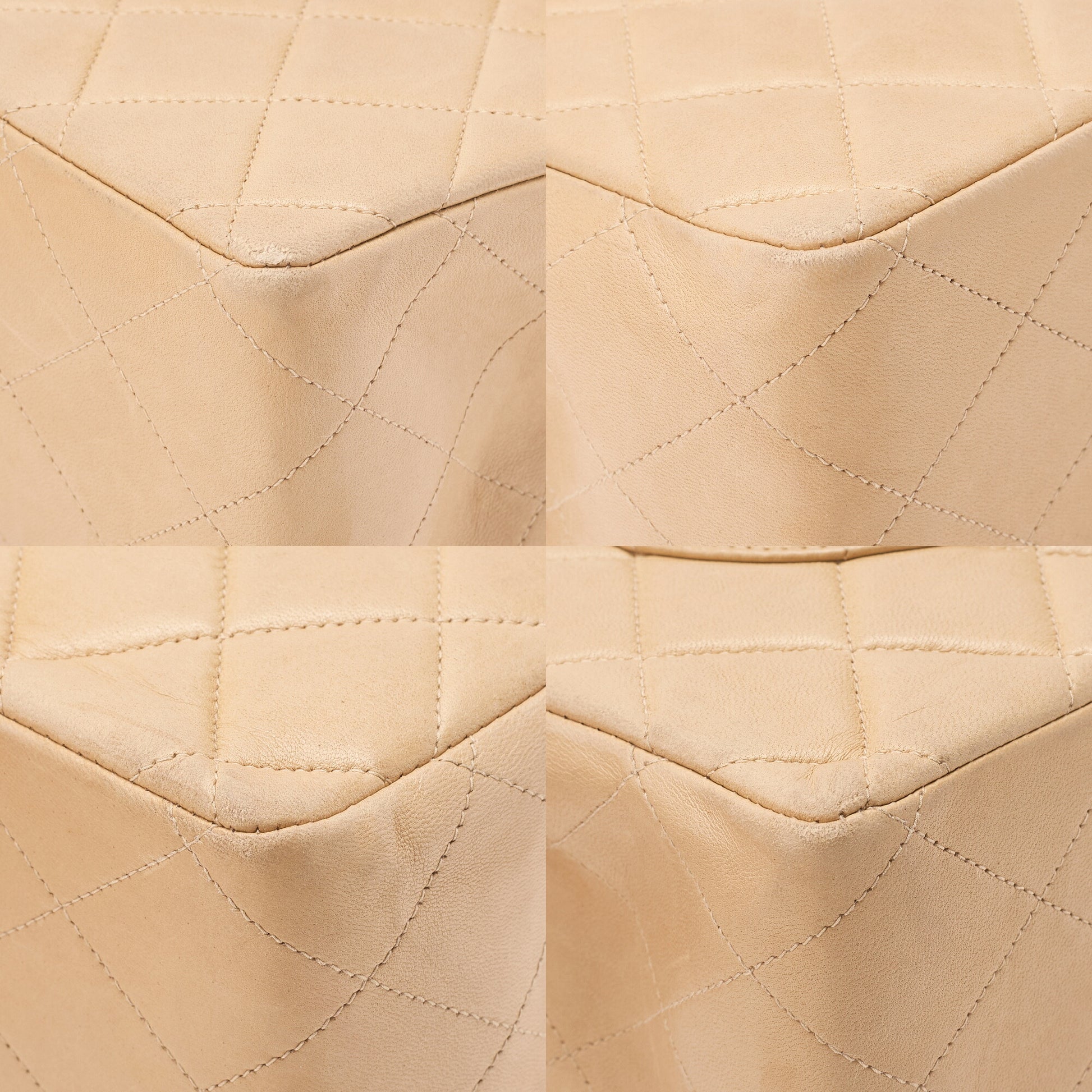 - Color & Hardware: Beige with Gold-tone fittings