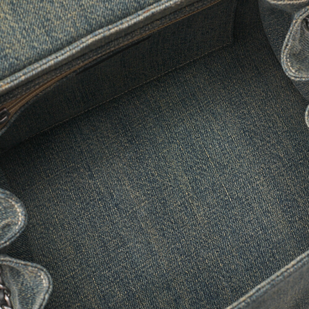 CHANEL Chocolate Bar 2.55 Lock Chain Shoulder Denim x Lambskin Black x Blue Silver-Tone Hardware, Pre-Owned