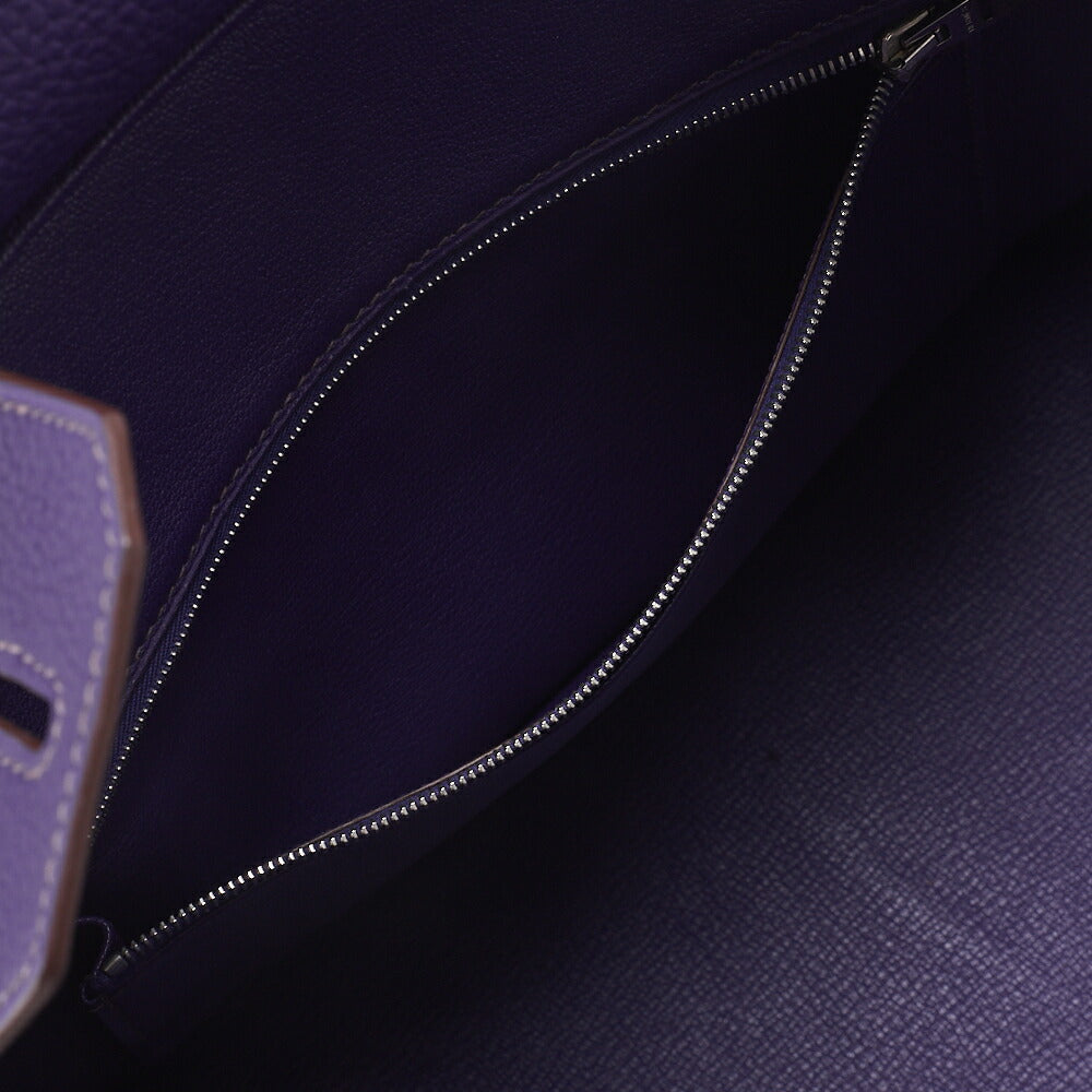 The HERMES Birkin 30 handbag in Ultra Violet Tryon Clemence leather with silver-tone hardware offers a timeless, luxurious carry for Hermes enthusiasts and style-conscious shoppers. This pre-owned piece combines iconic silhouette with a vivid color for everyday elegance.