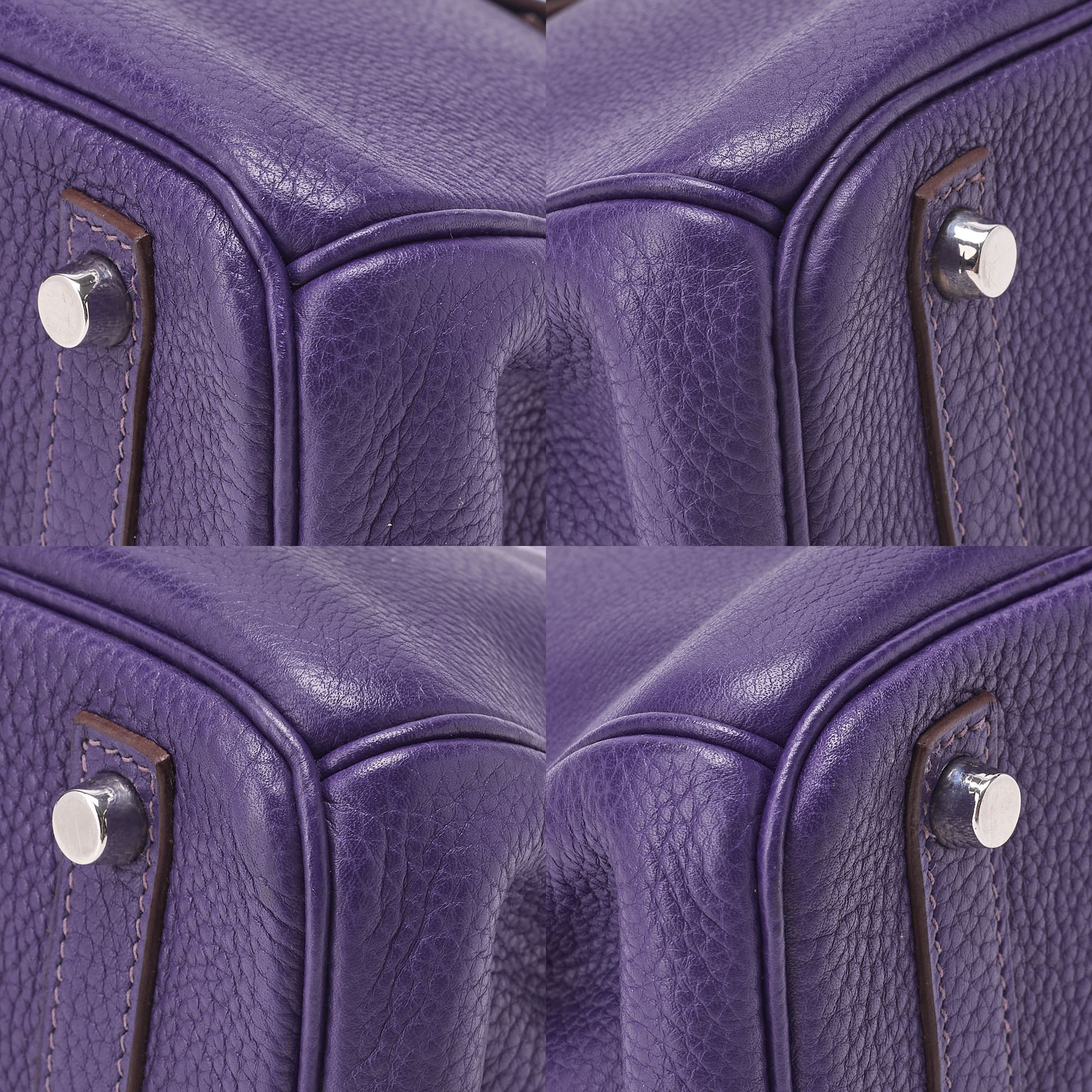 HERMES Birkin 30 Handbag Tryon Clemence Ultra Violet Silver-Tone Hardware, Pre-Owned