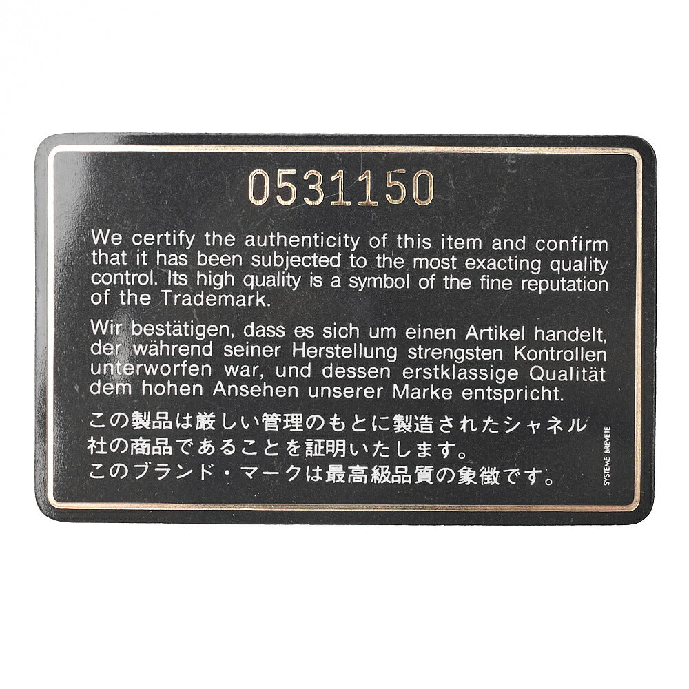 Condition and provenance are presented with candor: external surface thinning, push marks, and subtle mold wrinkles accompany the gold fittings, while the interior retains a small zipper pocket cut. The accessory comes with a G-Card bearing a serial seal, and the serial is 0 series. A licensed secondhand dealer (Tokyo Metropolitan Public Safety Commission) provides documentation of authenticity and traceable lineage, reinforcing its status as a curated pre-owned CHANEL with enduring value.