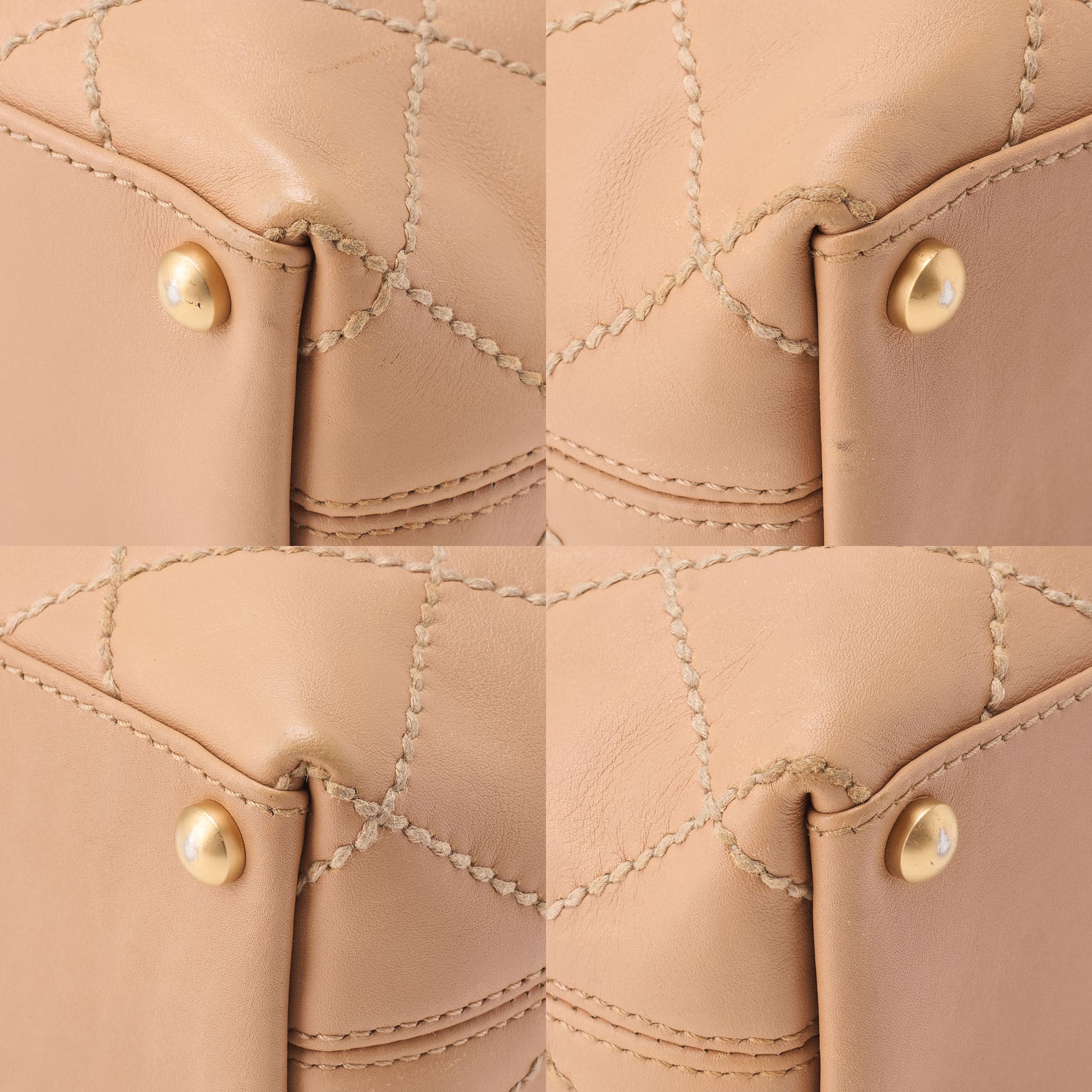 CHANEL Cocomark Wild Stitch Handbag Calfskin Beige Gold-Tone Hardware, Pre-Owned