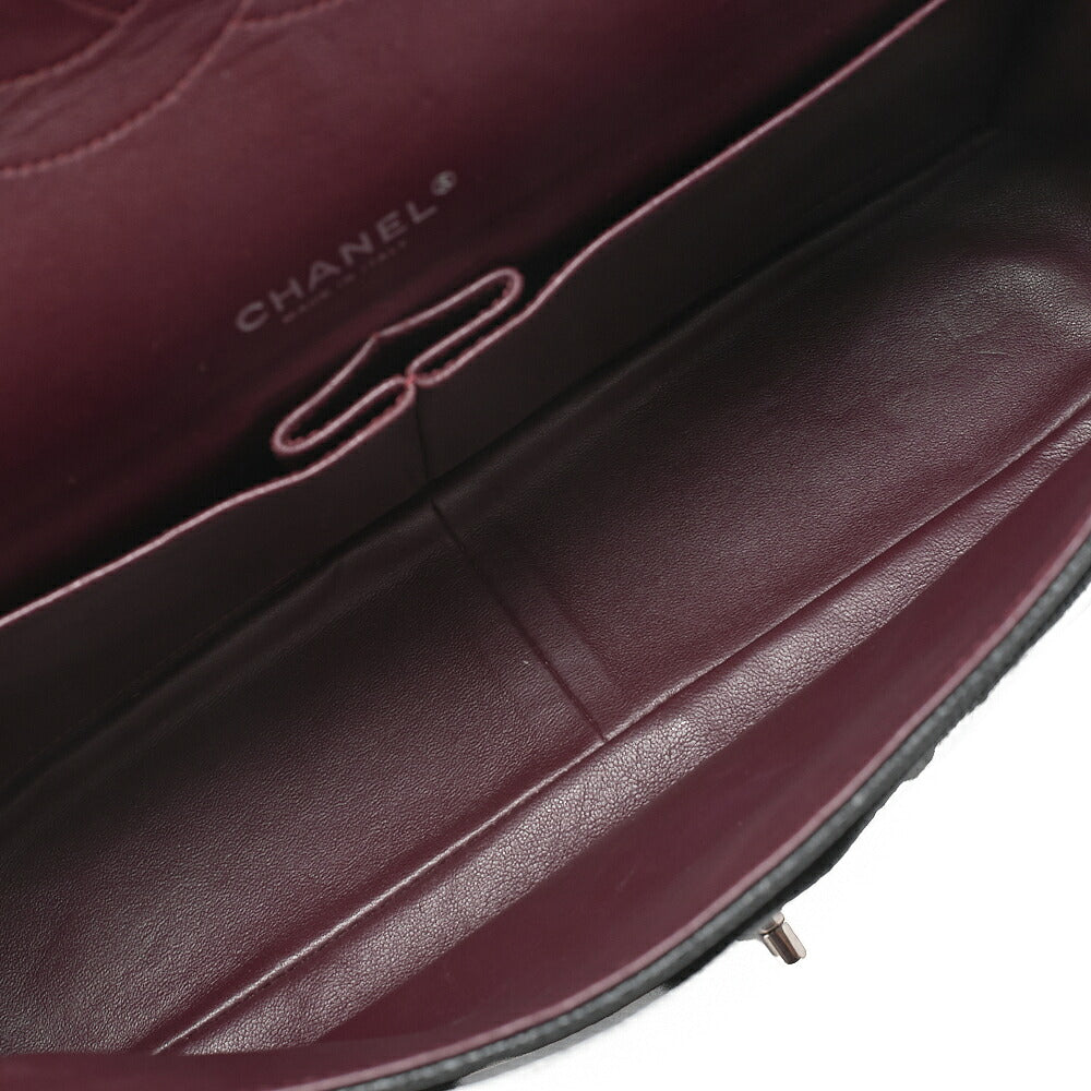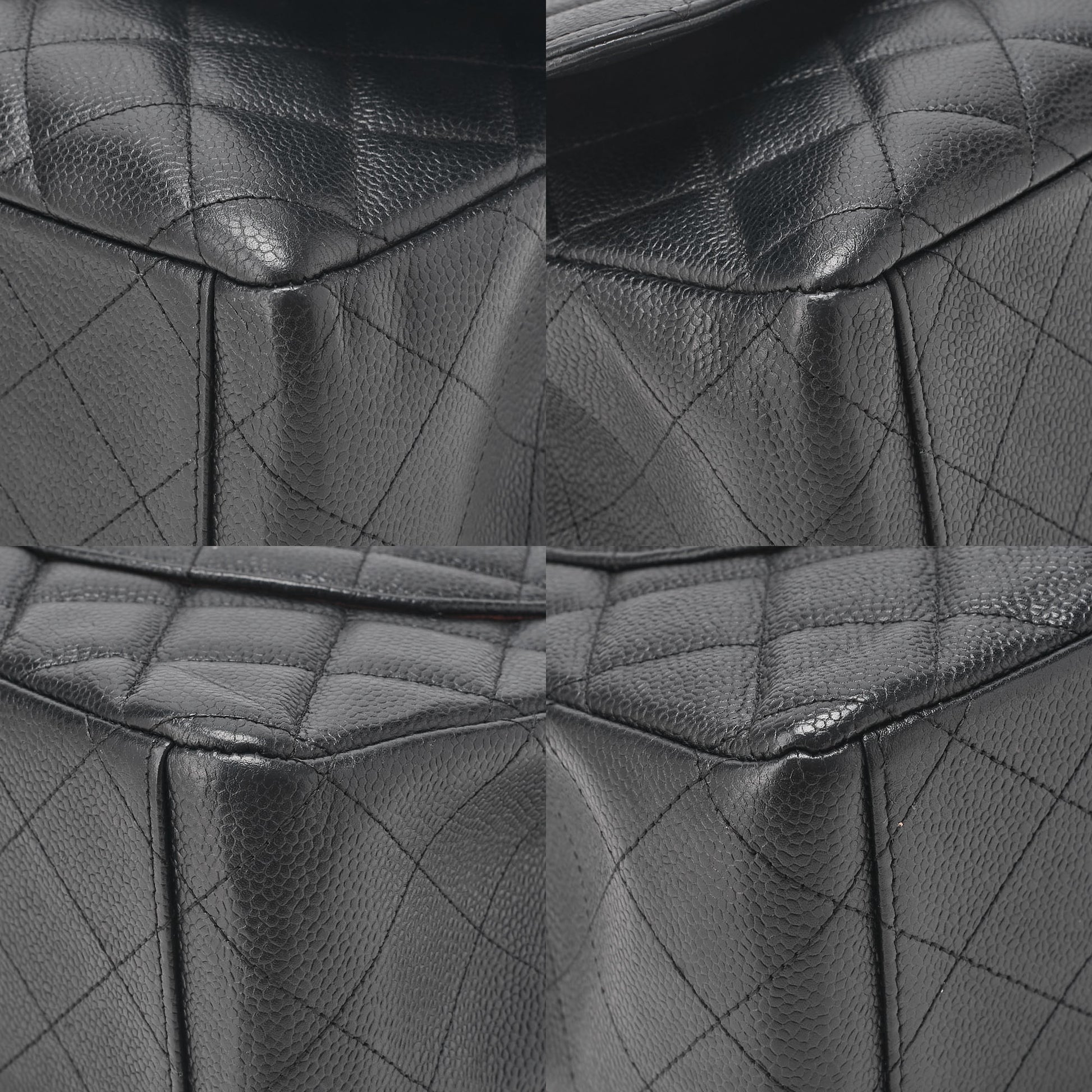 CHANEL Deca Matelasse Double Flap Chain Shoulder Bag Caviar Skin Black Silver-Tone Hardware, Pre-Owned