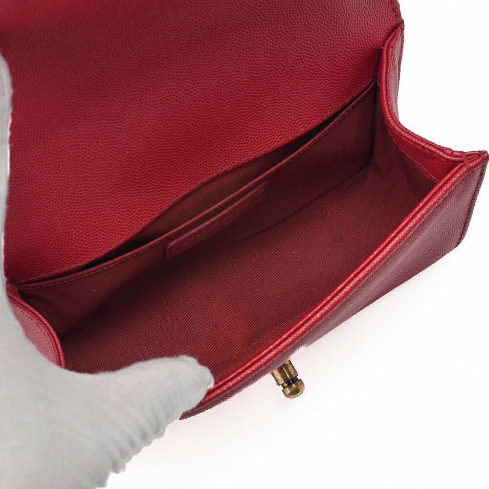 CHANEL Boy Chanel V-Stitch Chain Shoulder Caviar Skin Red Gold-Tone Hardware, Pre-Owned