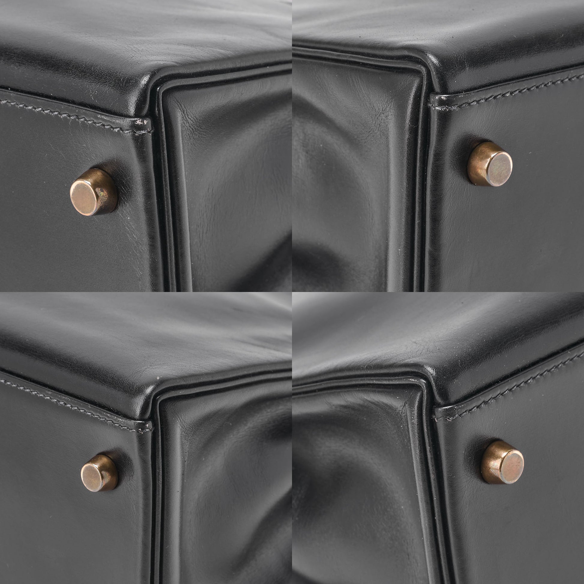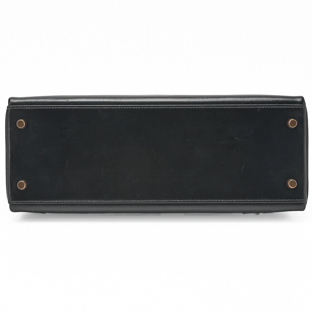 HERMES Kelly 32 Handbag Inseam Box Calf Black Gold-Tone Hardware, Pre-Owned