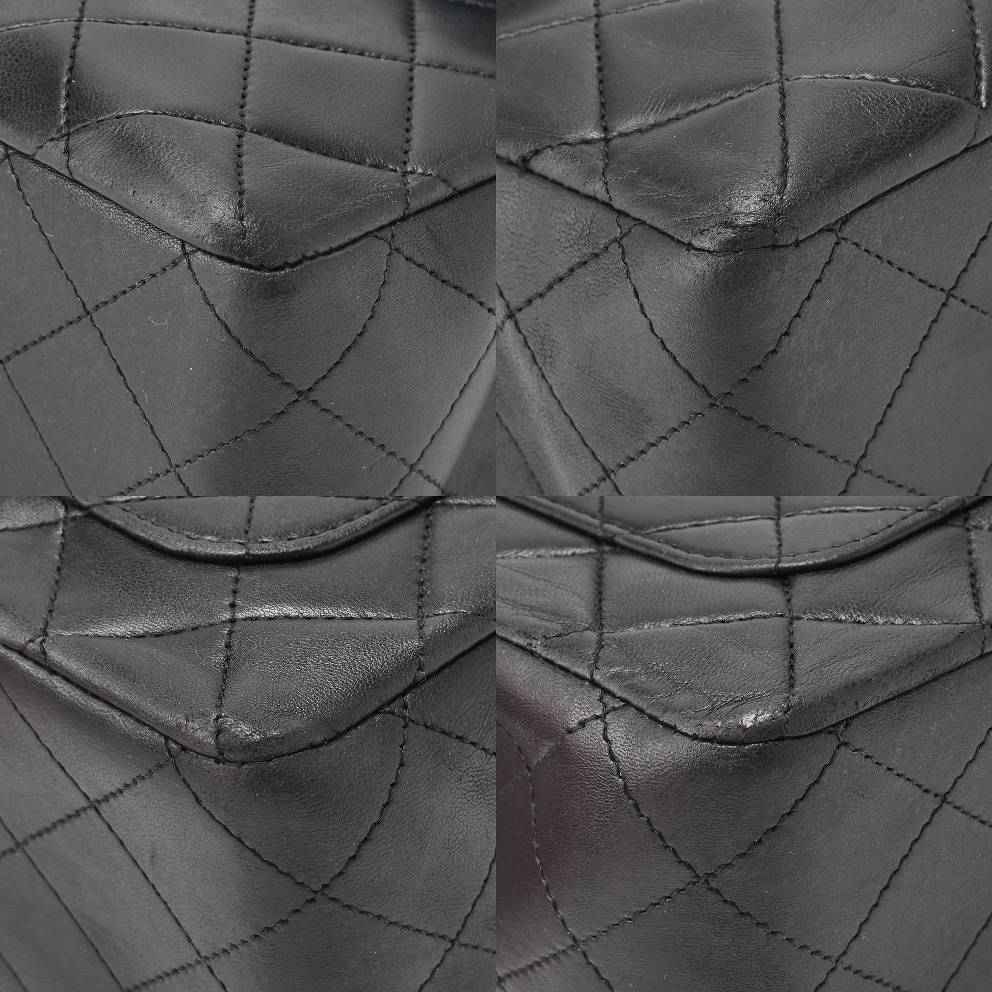 CHANEL Matelasse Double Flap Square Chain Shoulder Bag Lambskin Black Gold-Tone Hardware, Pre-Owned