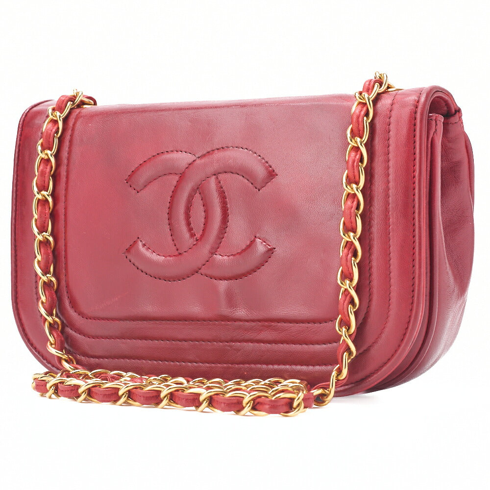 CHANEL Chain Shoulder Full Flap Coco Mark Lambskin Red Gold-Tone Hardware, Pre-Owned