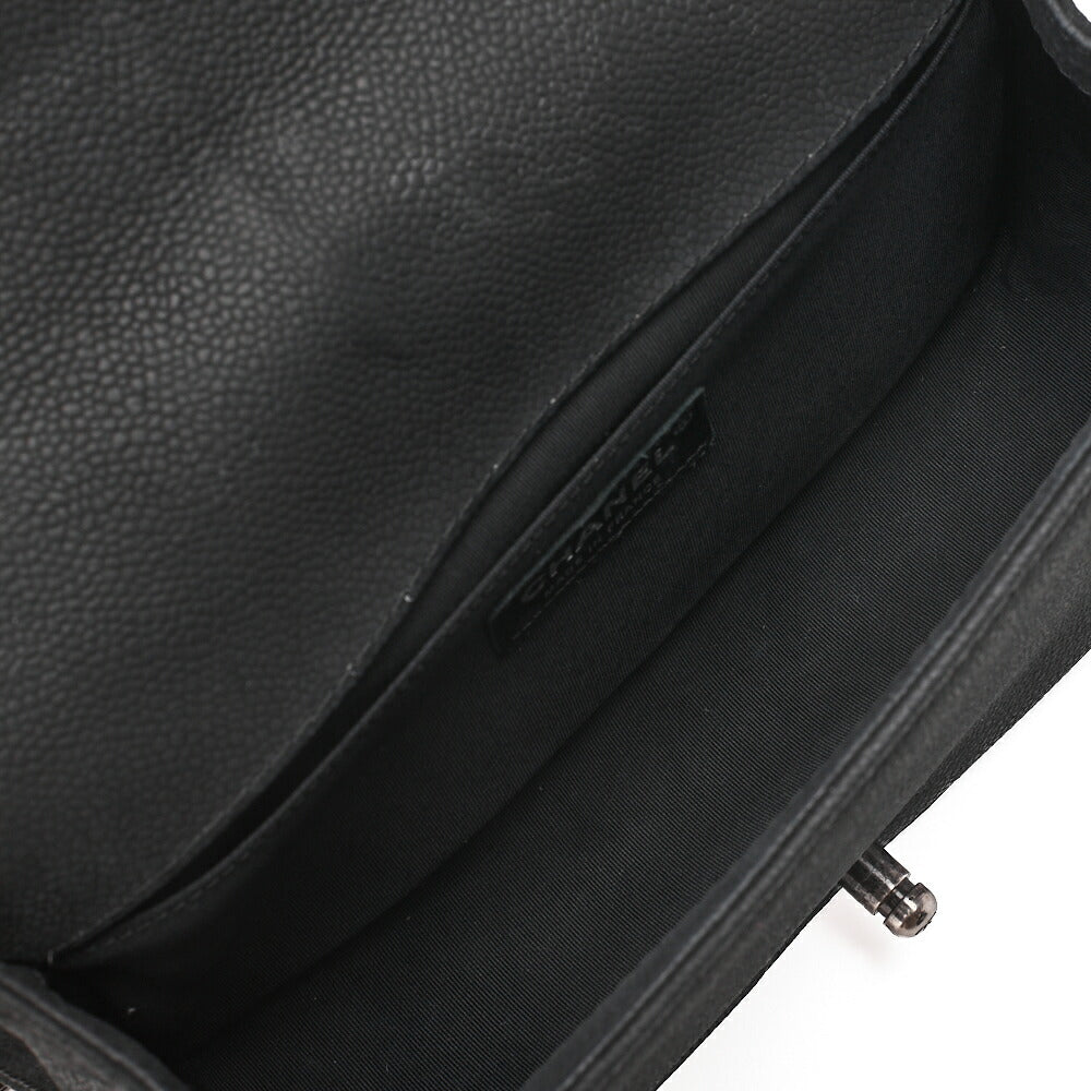CHANEL Boy Chanel Matelasse Chain Shoulder Bag Soft Caviar Skin Black Silver-Tone Hardware, Pre-Owned