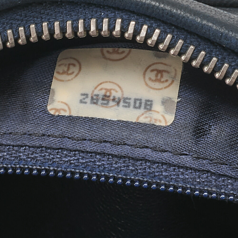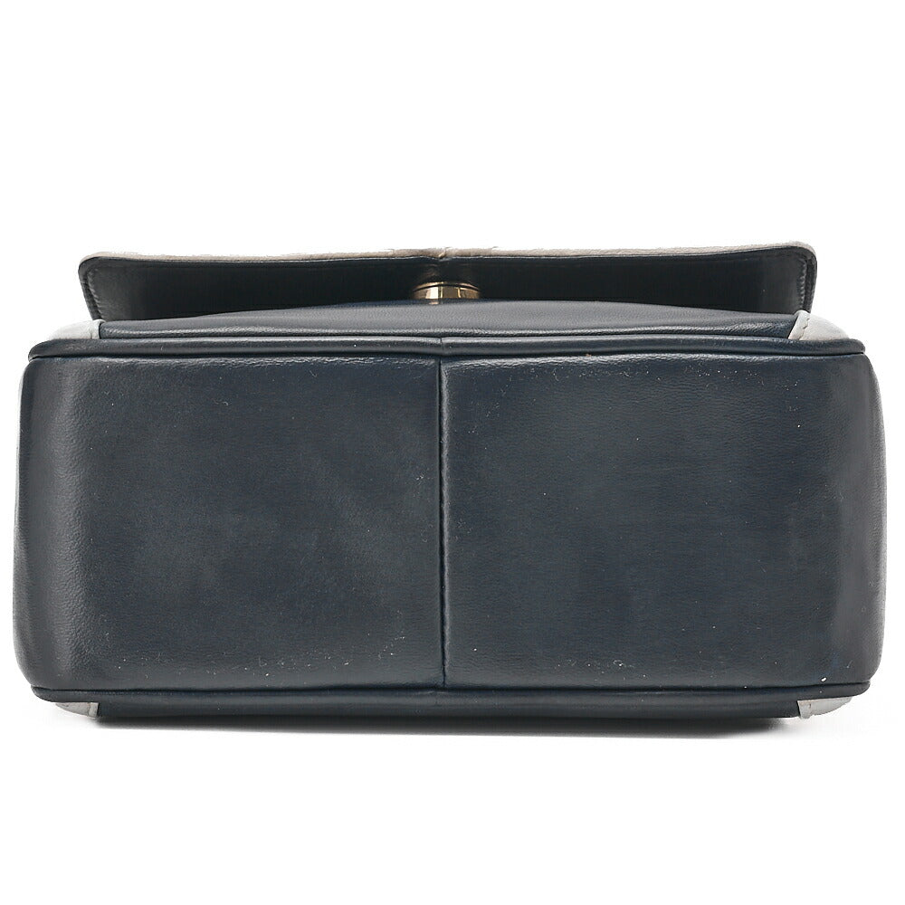 CHANEL Chain Shoulder Bag Coco Mark Fringe Lambskin Bicolor Navy x White Gold-Tone Hardware, Pre-Owned