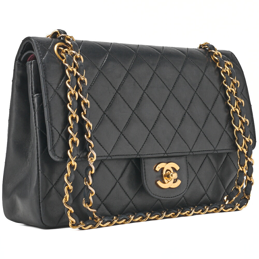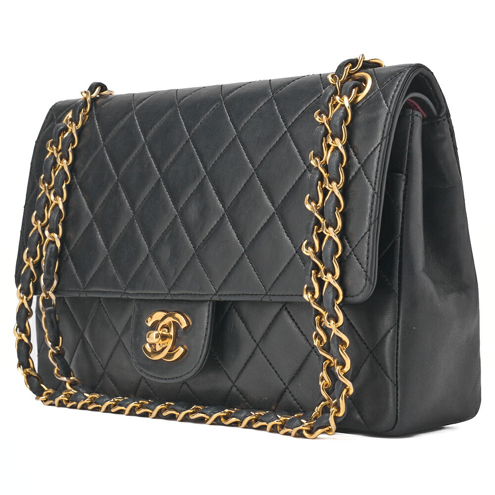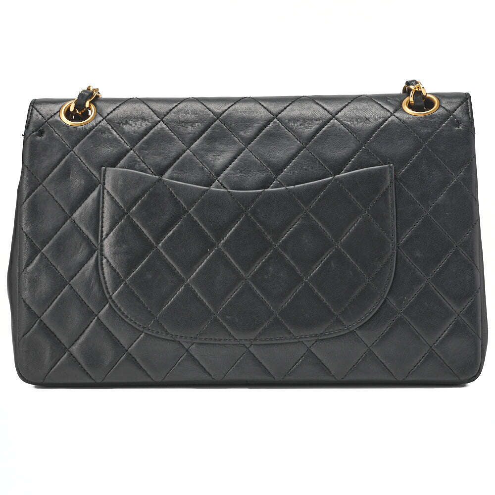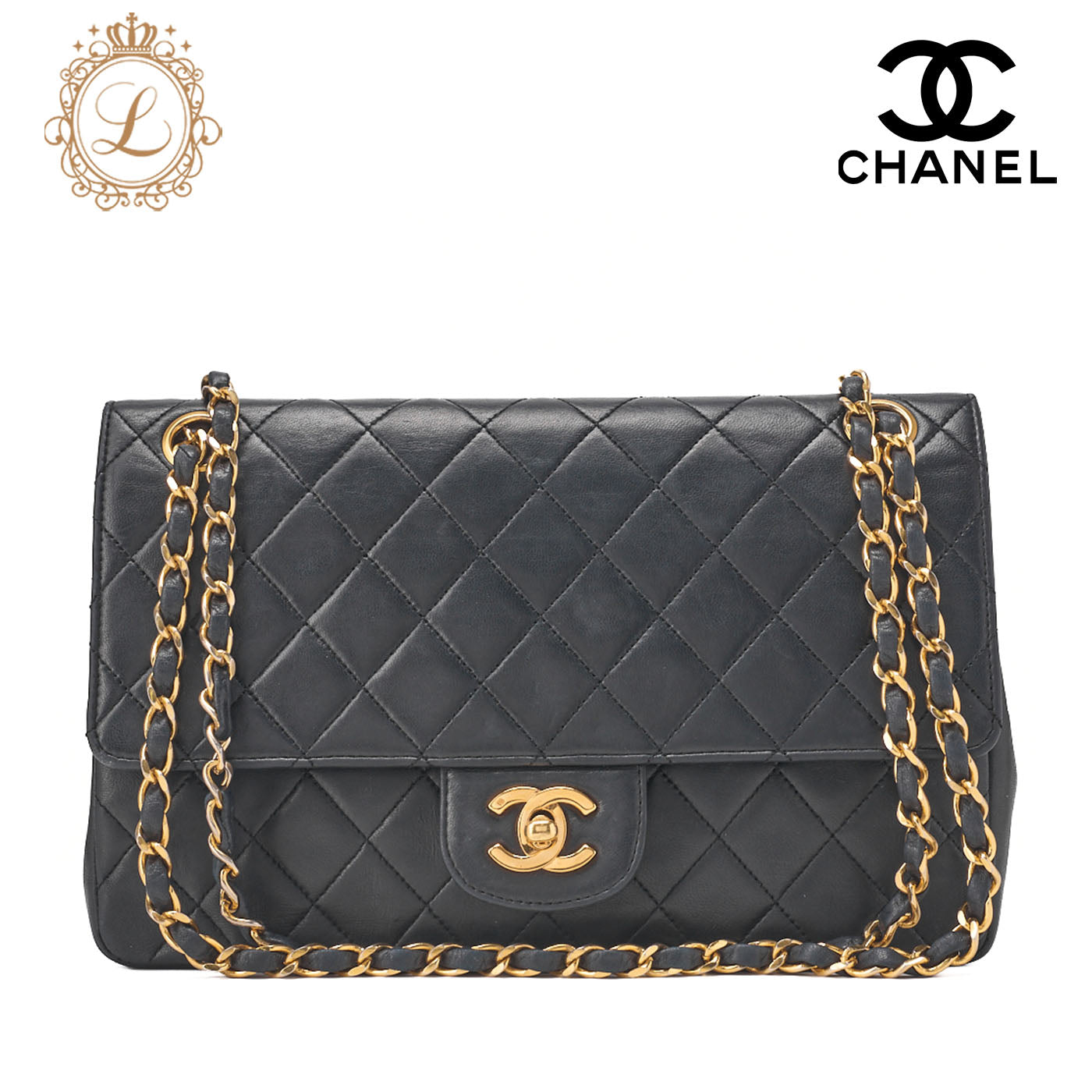 CHANEL Chain Shoulder Matlasse Turn Lock Straight Flap Chain Shoulder Lambskin Black Gold-Tone Hardware, Pre-Owned