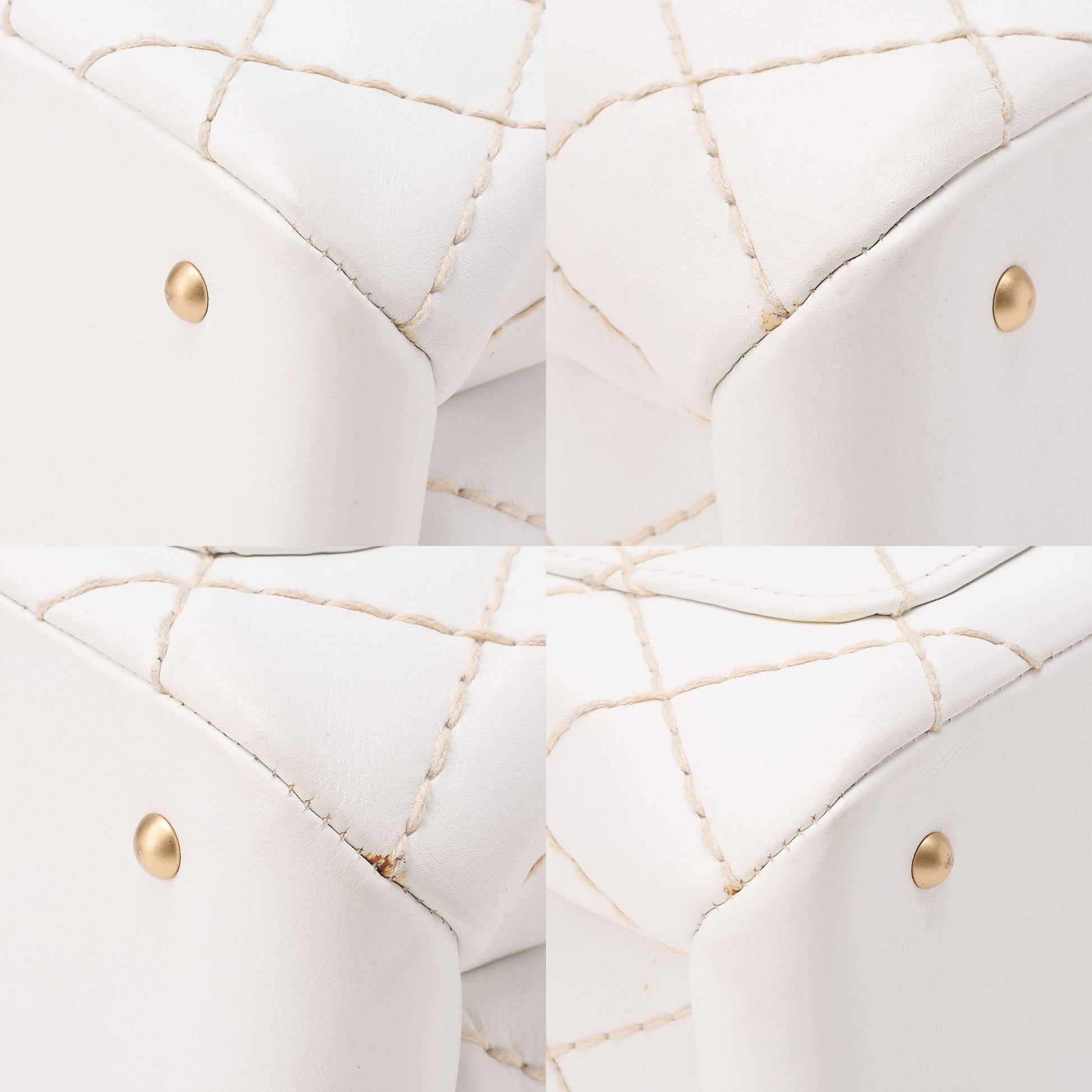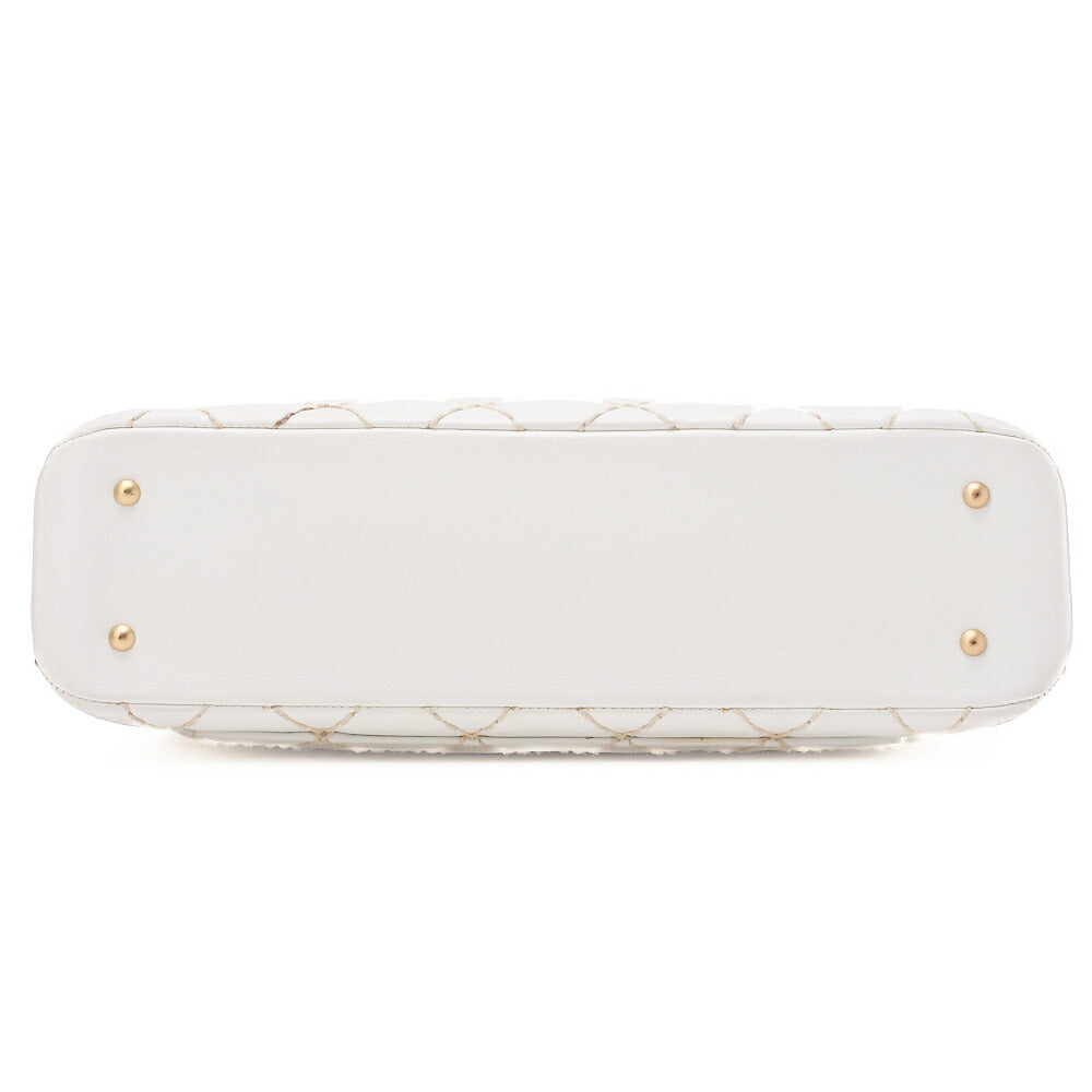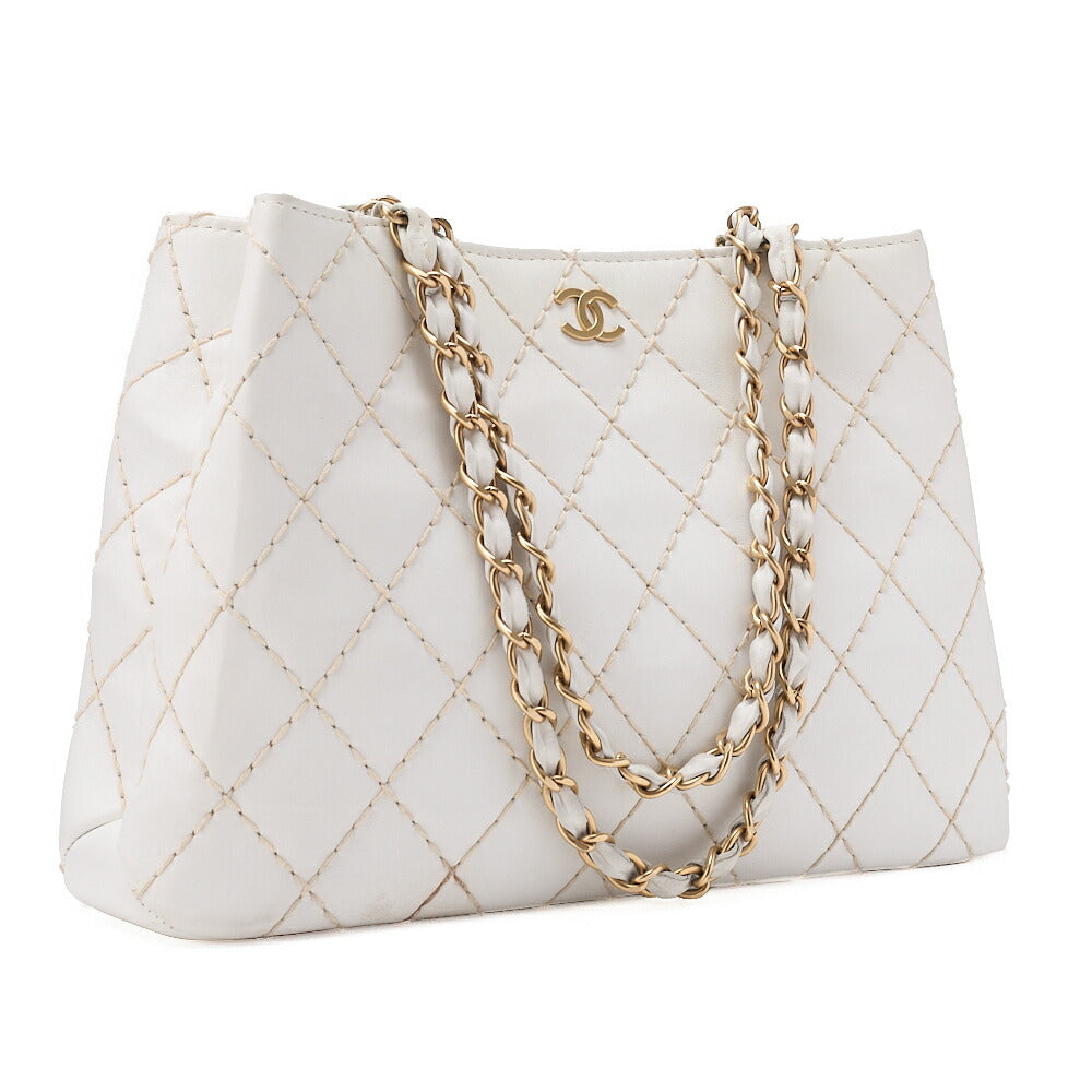 CHANEL Matelasse Wild Stitch Chain Tote Bag Calf White Gold-Tone Hardware, Pre-Owned