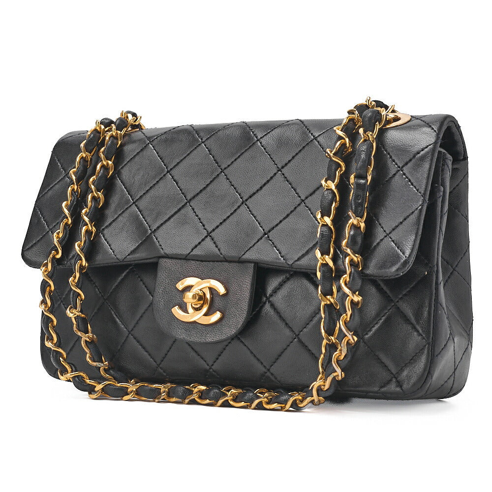 CHANEL Chain Shoulder Bag Matelasse 23cm Double Flap Lambskin Navy Gold-Tone Hardware, Pre-Owned
