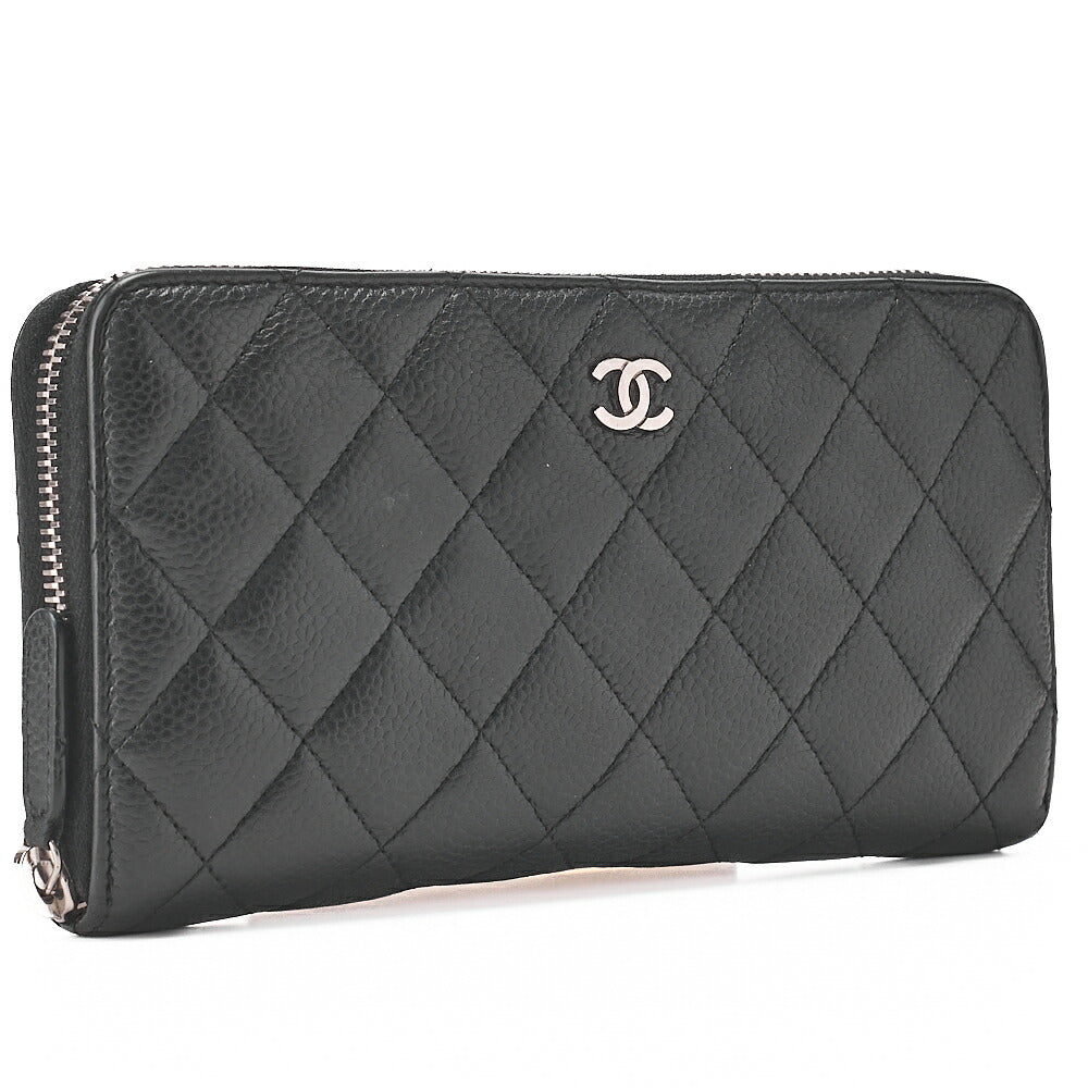 CHANEL Matlasse Round Long Wallet Caviar Skin Black (Silver Fittings) Women's Wallet Wallet [Used] [Free Shipping]