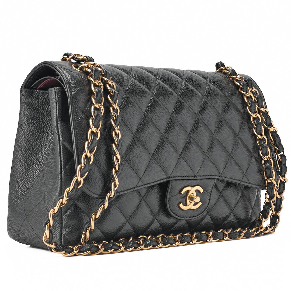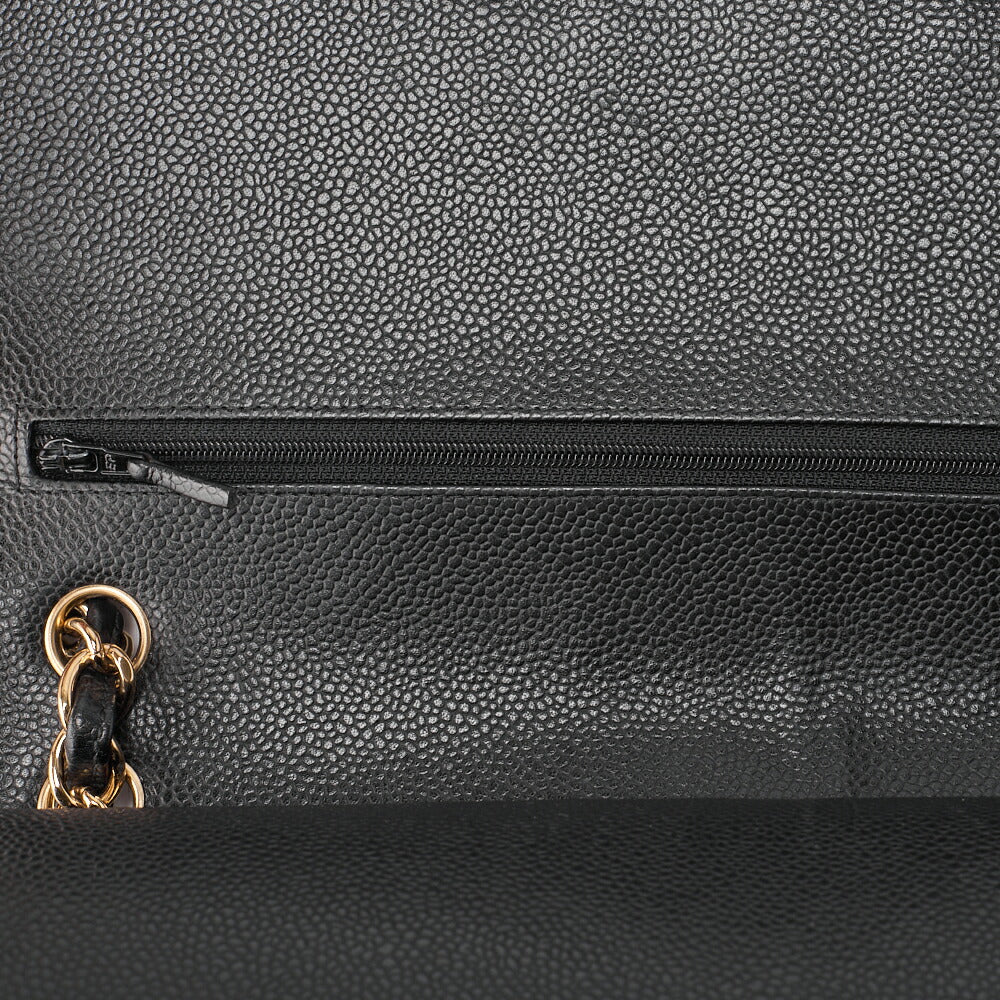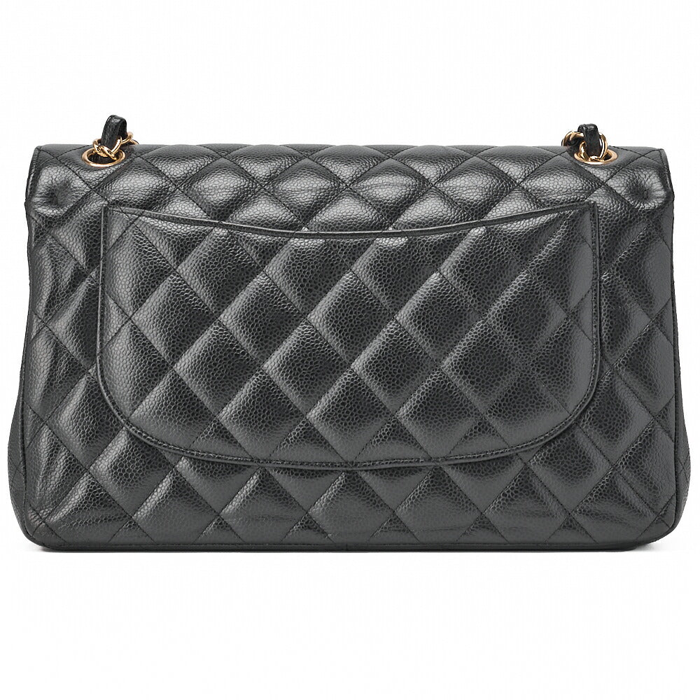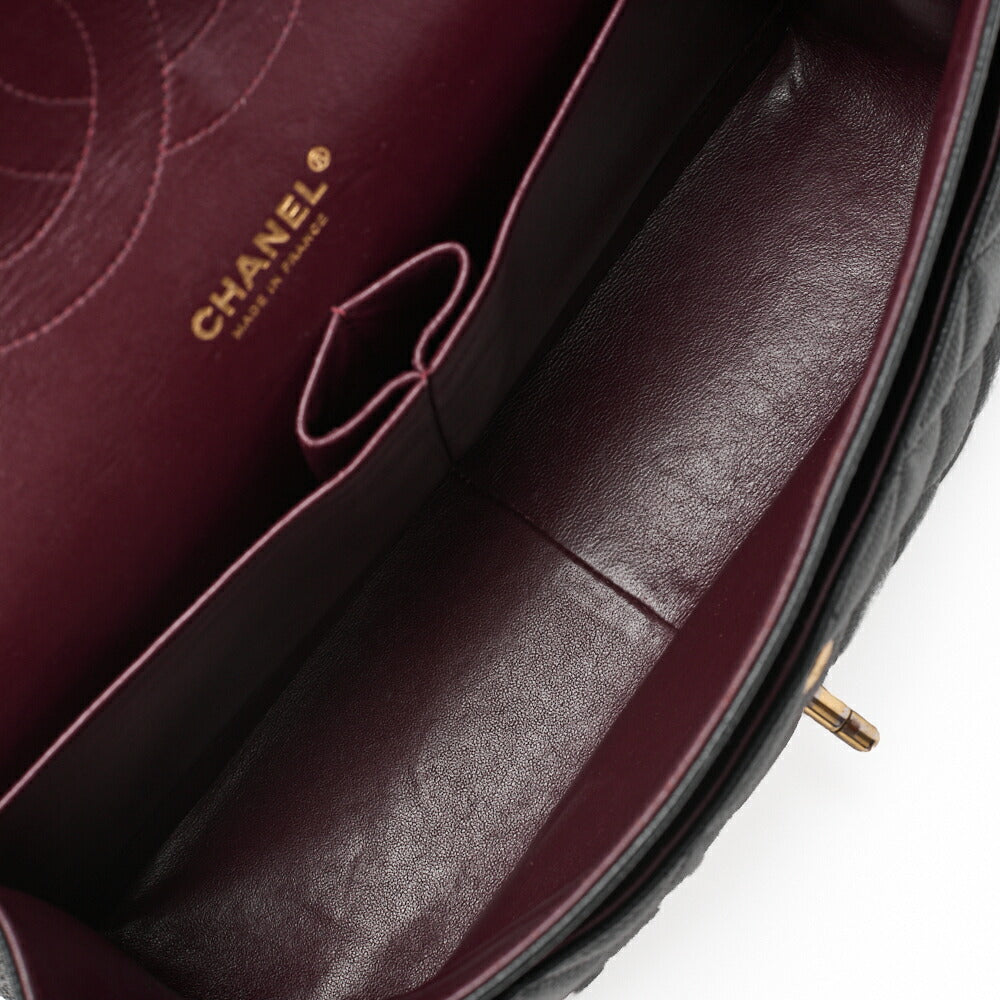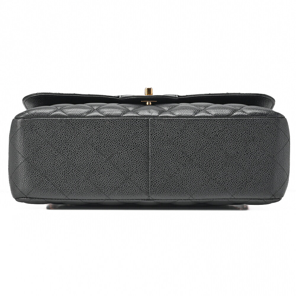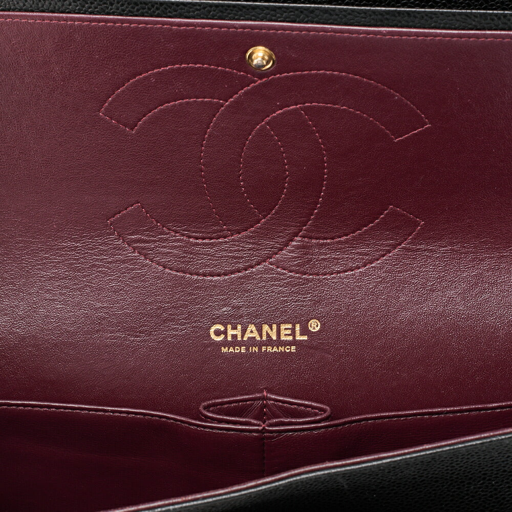 CHANEL Chain Shoulder Bag Deca Matrasse 30cm Double Flap Caviar Skin Black Gold-Tone Hardware, Pre-Owned