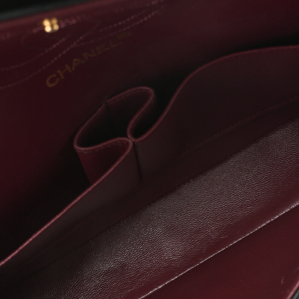 CHANEL Lambskin Matelasse W Straight Flap 25 Chain Shoulder Black Gold-Tone Hardware, Pre-Owned