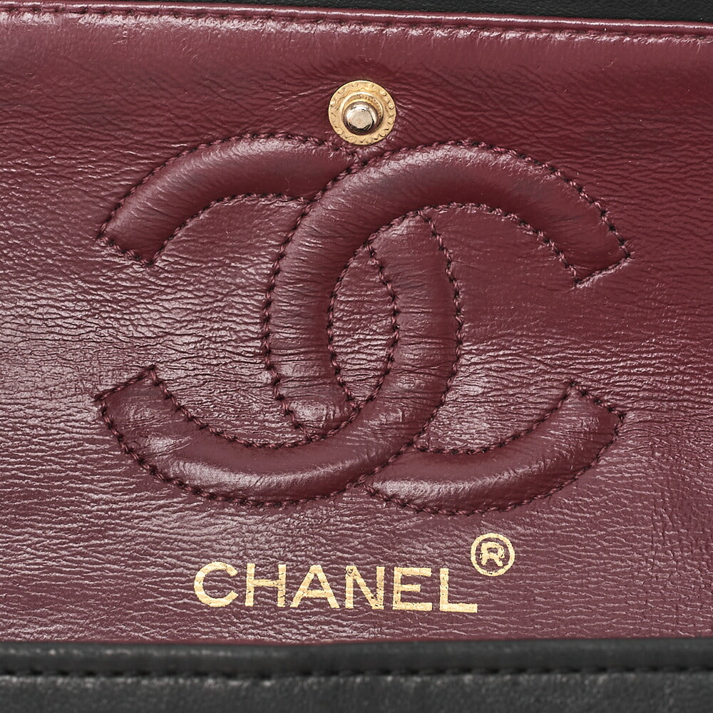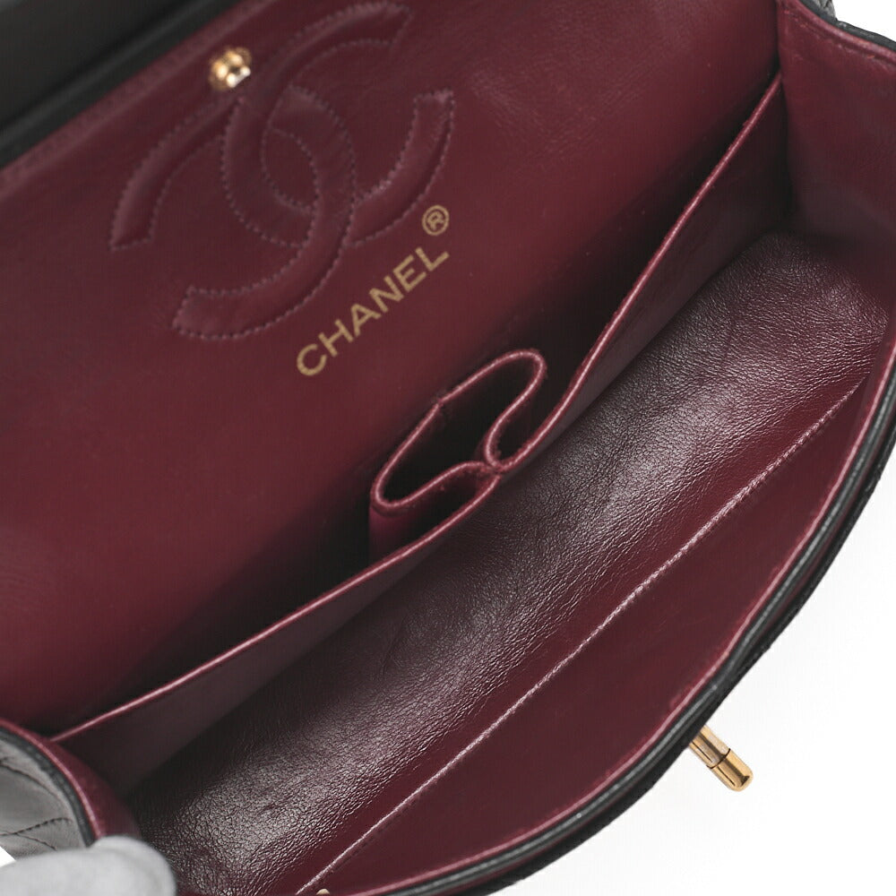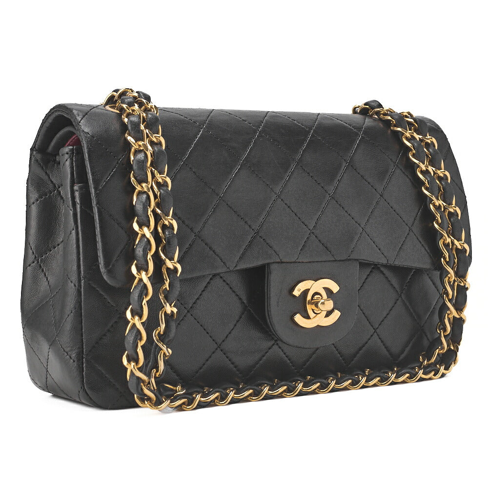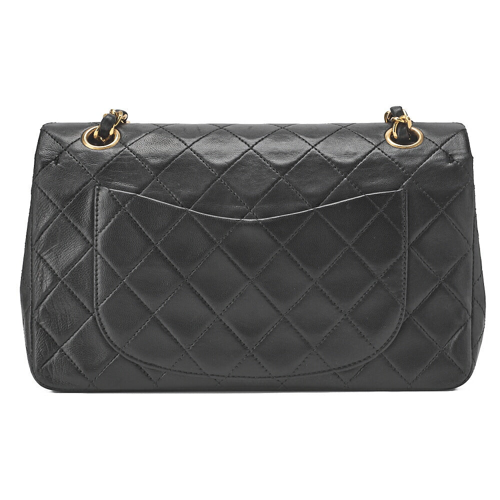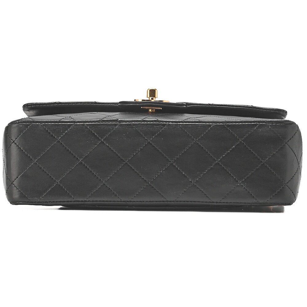 CHANEL Chain Shoulder Bag Matelassé Double Flap 23cm Lambskin Black Gold-Tone Hardware, Pre-Owned