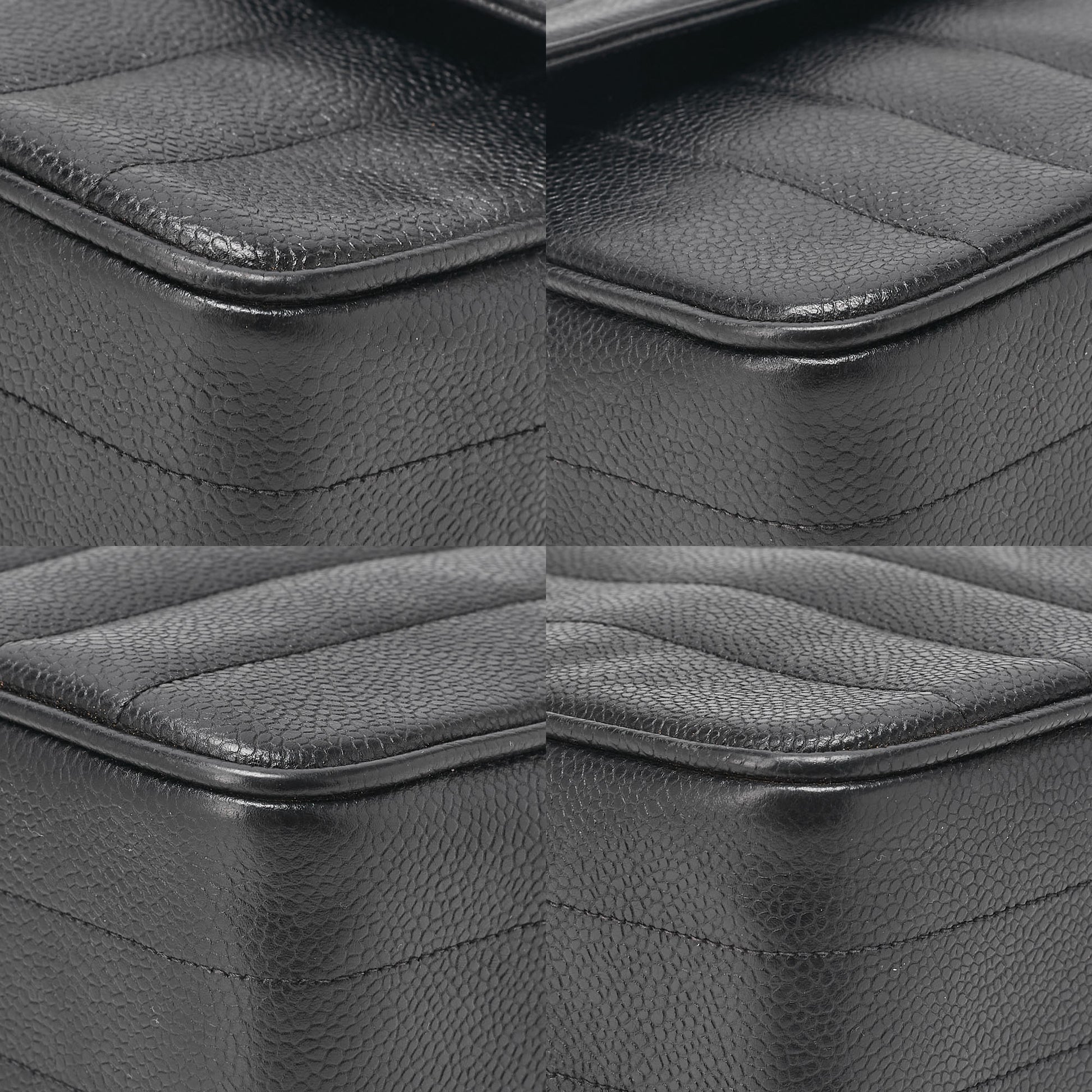 - Materials and hardware: Caviar leather; black; gold-tone hardware.