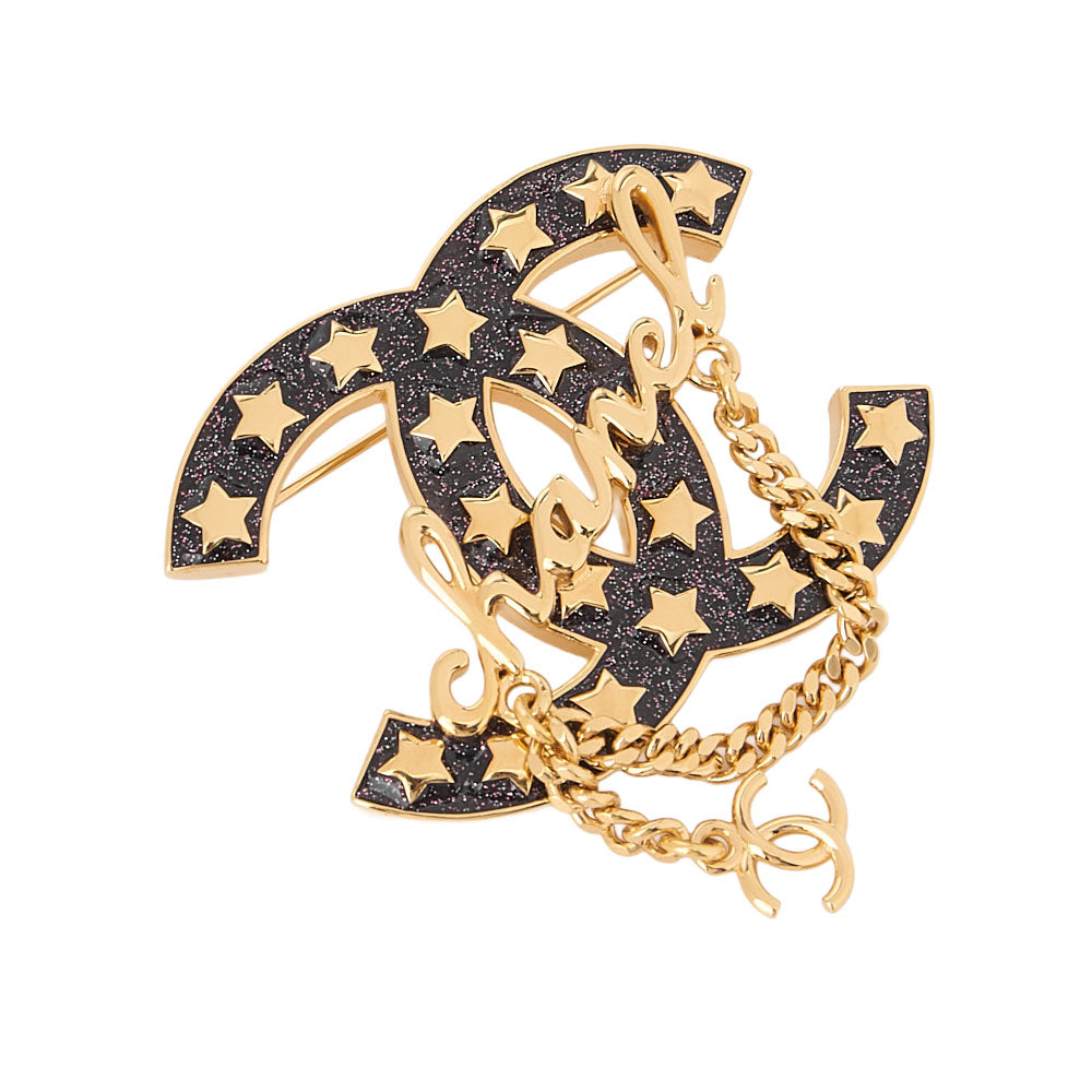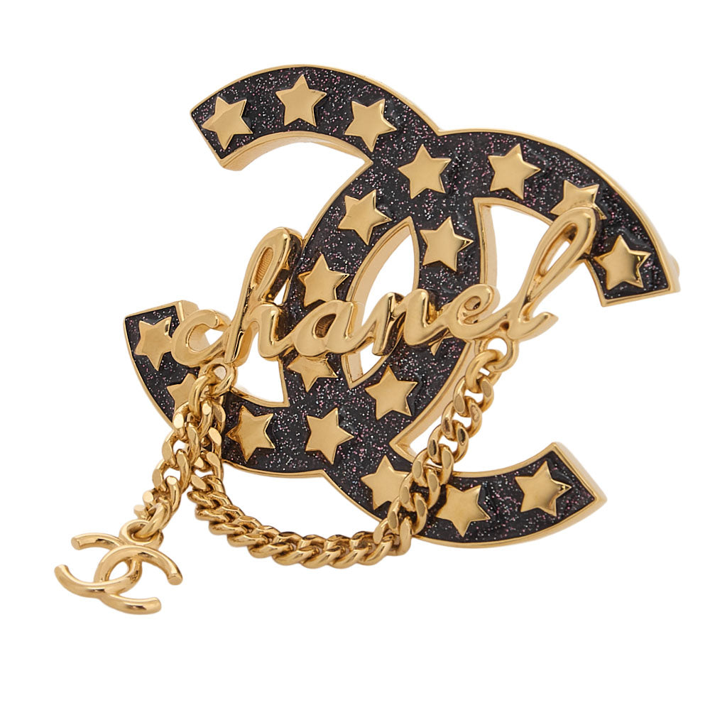 CHANEL CC Mark Star Lame Brooch Pin I24C Gold-Tone Hardware, Pre-Owned