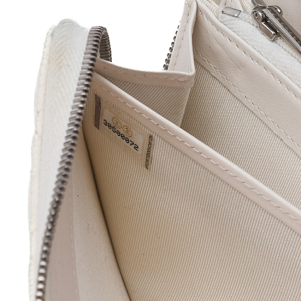 CHANEL Matelasse Round Long Wallet Caviar Skin White Silver-Tone Hardware, Pre-Owned