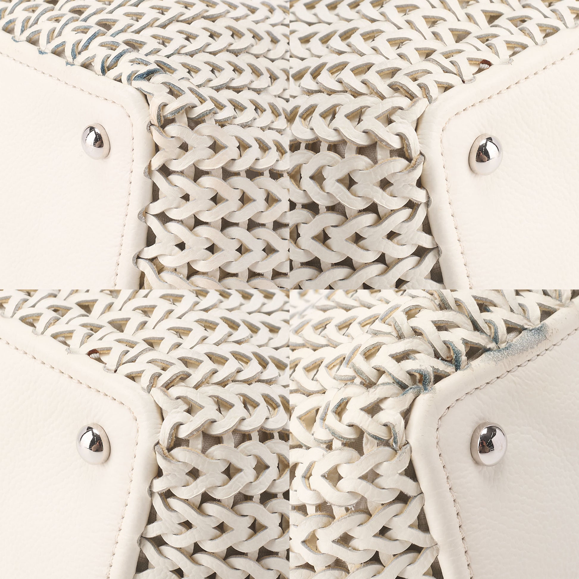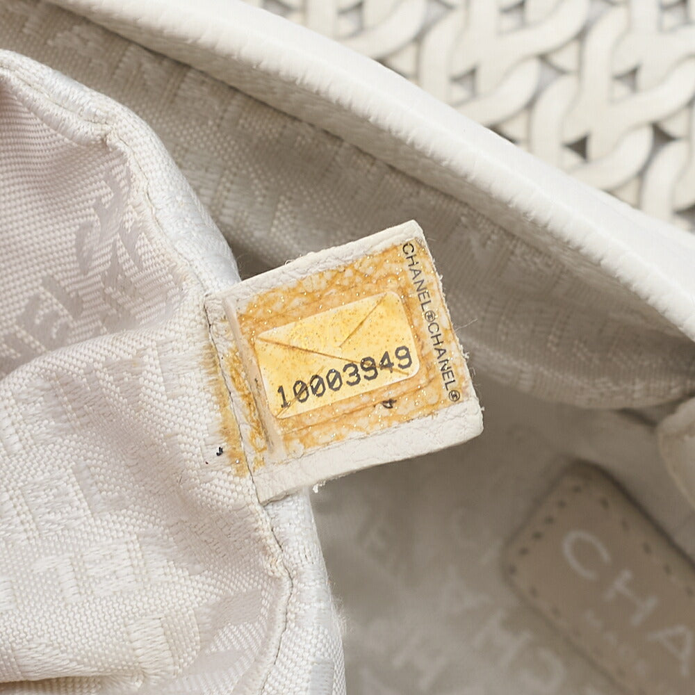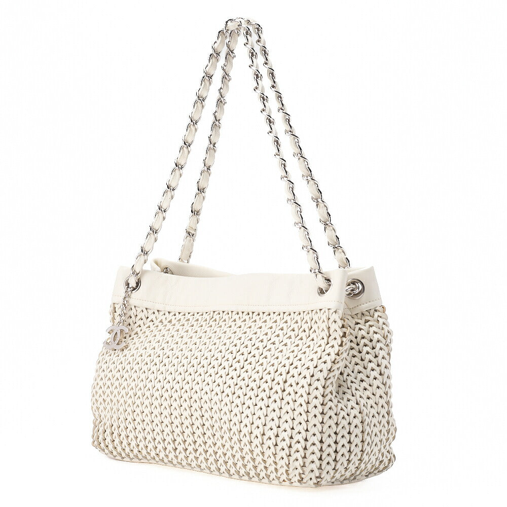 CHANEL Caviar Skin Shoulder Bag Braided Chain Tote Leather Coco Charm White Silver-Tone Hardware, Pre-Owned