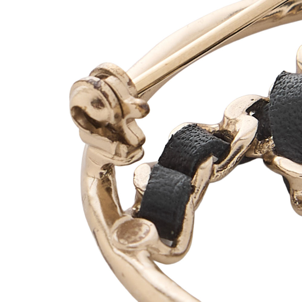CHANEL Circle Coco B19P Brooch, rendered in GP gold plating with black leather accents, distills the house’s heritage into a wearable symbol of refinement. The circle motif is complemented by a leather charm and gold-tone hardware, a combination designed for lasting appeal. Sized at approximately 4 cm by 4 cm, it sits elegantly on a tailored lapel, secures a silk scarf, or accents a luxury bag, inviting a discerning collector to acquire a piece with proven CHANEL provenance. In the pre-owned market, this item is scarce and deliberately limited, reinforcing its collector value.