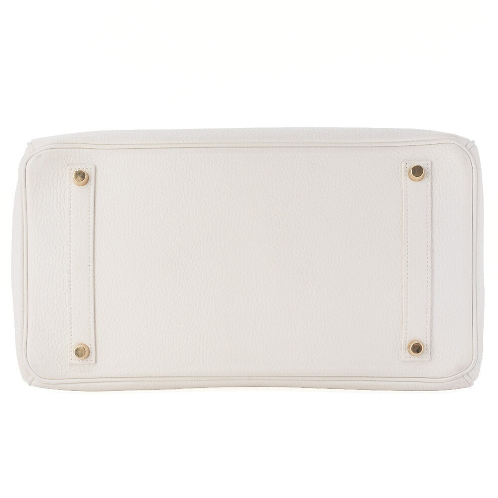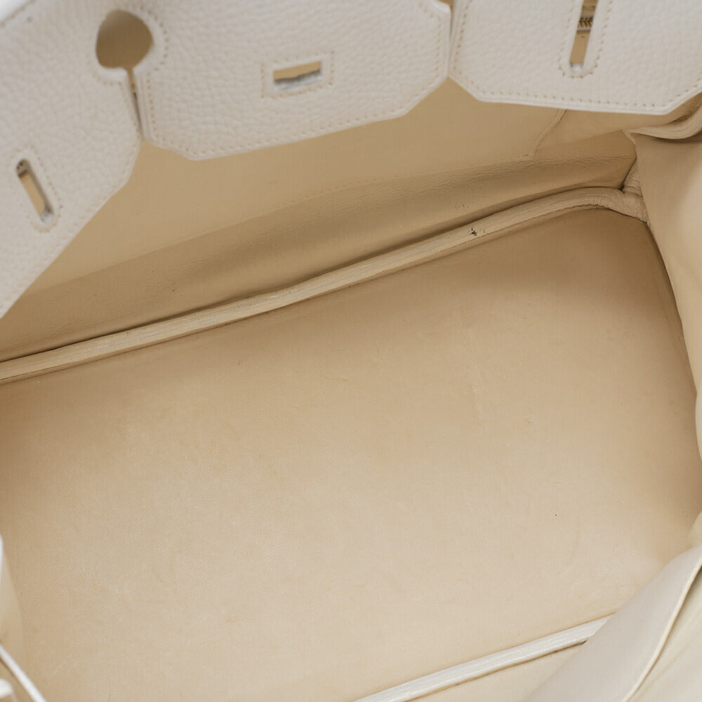 HERMES Birkin 35 Handbag Tryon Clemence White Gold -Tone Hardware, Pre-Owned