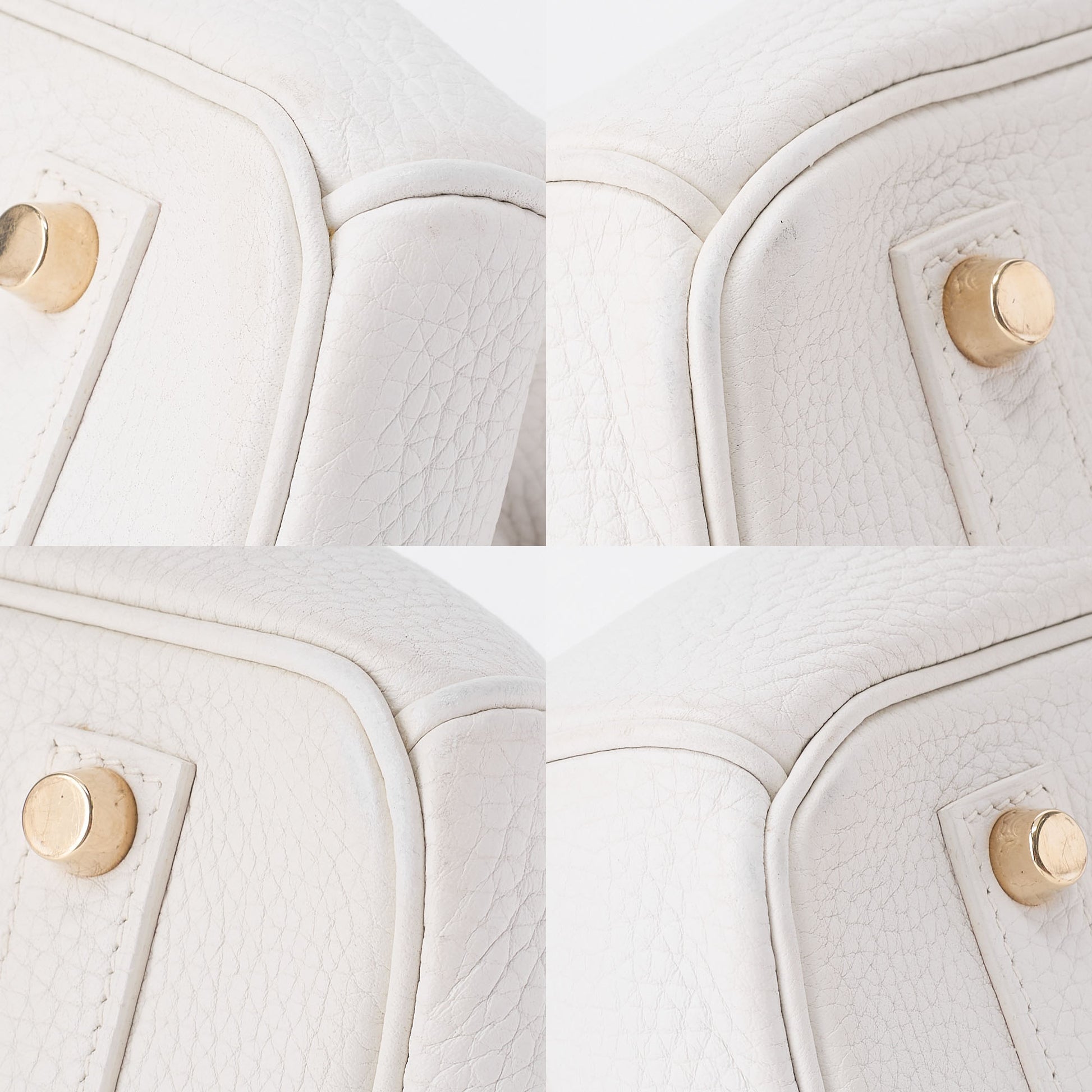 - Model & material: Hermès Birkin 35, Tryon Clemence leather; color White with gold-tone hardware