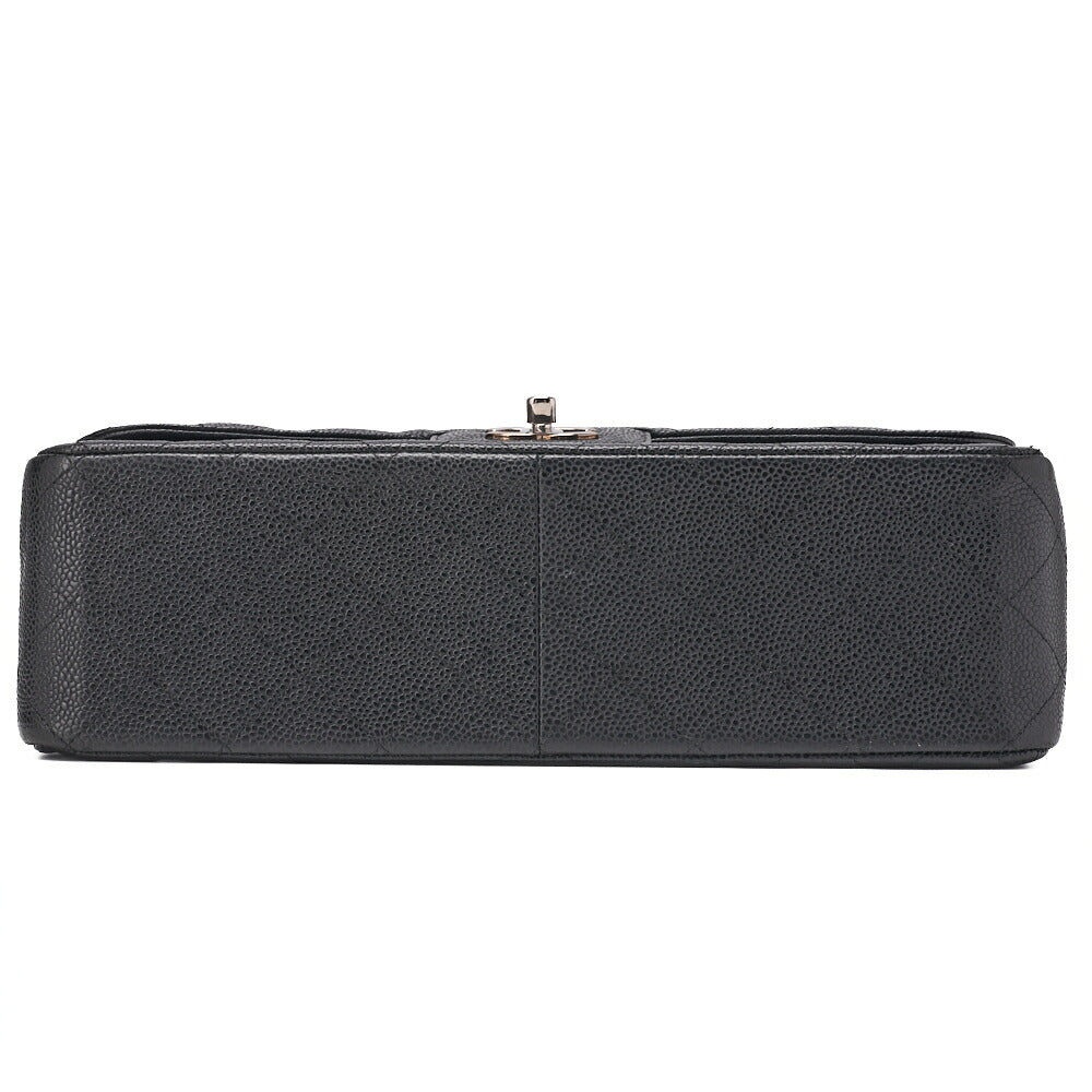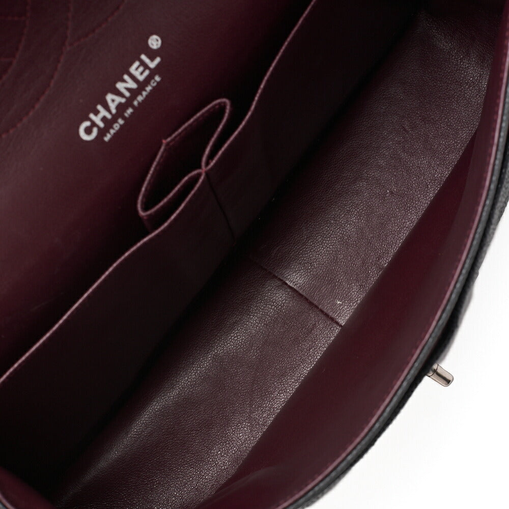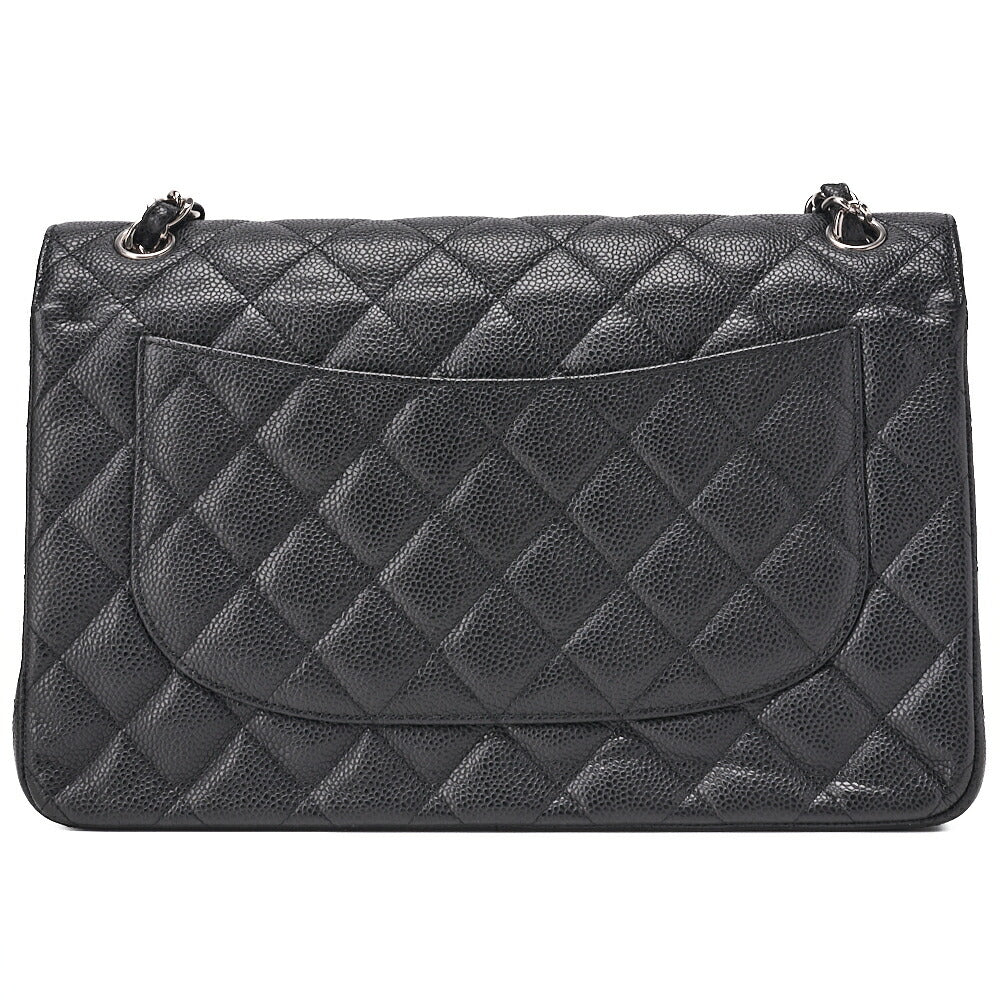 CHANEL Chain Shoulder Bag Deca Matelassé 30cm Double Flap Caviar Skin Black Silver-Tone Hardware, Pre-Owned