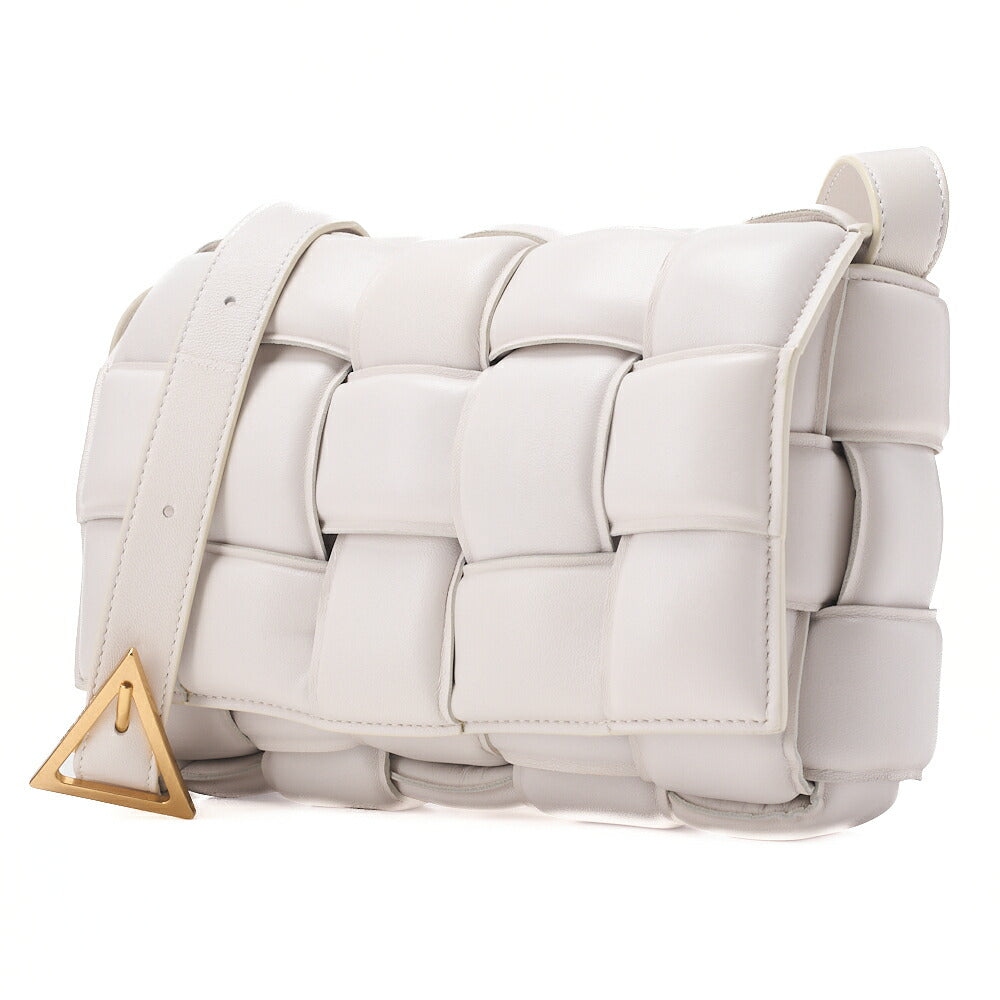 BOTTEGA VENETA Intrecciato Lambskin Padette Cassette Shoulder Back White Gold-Tone Hardware, Pre-Owned