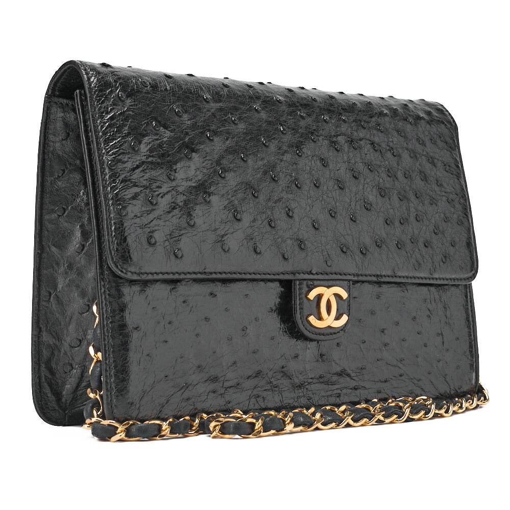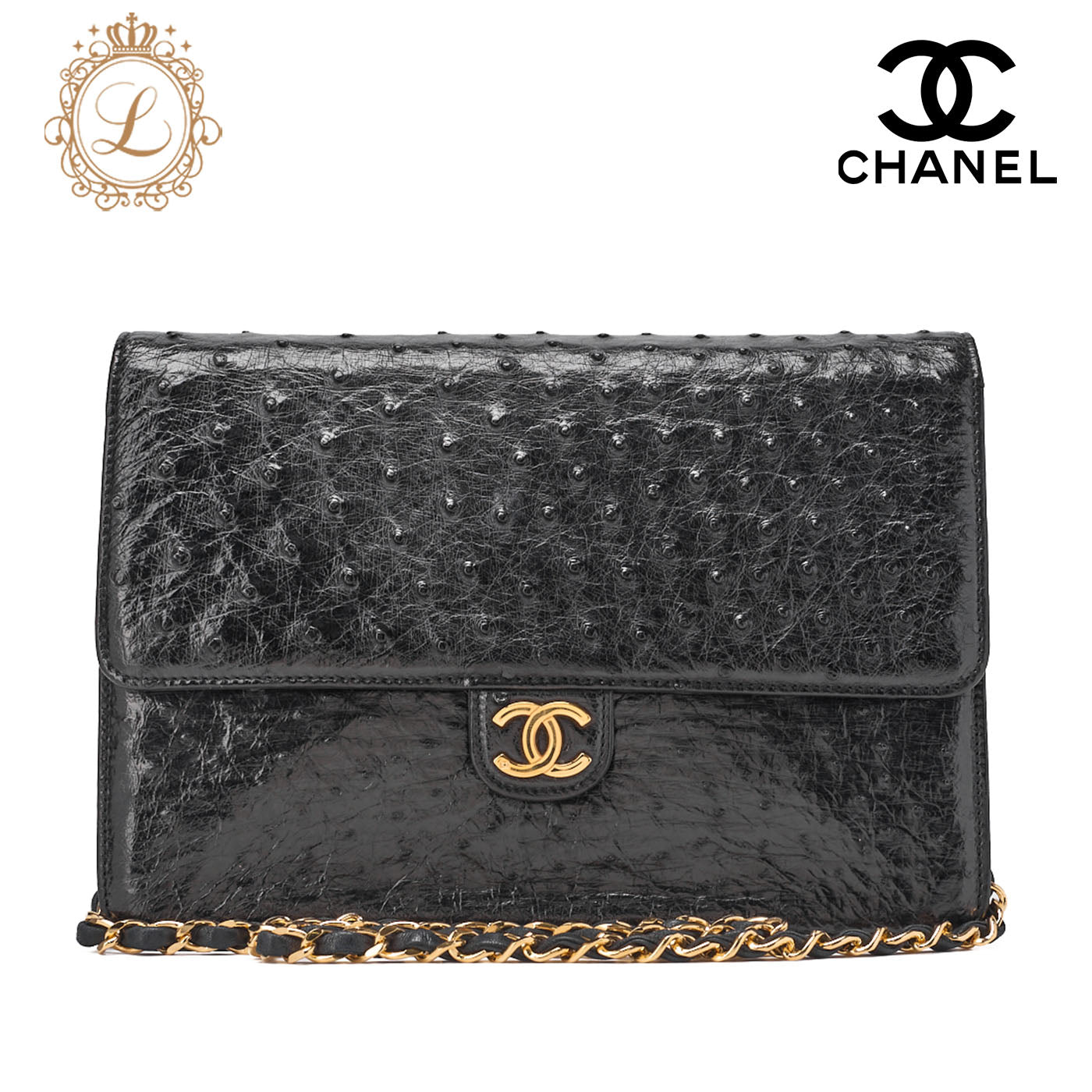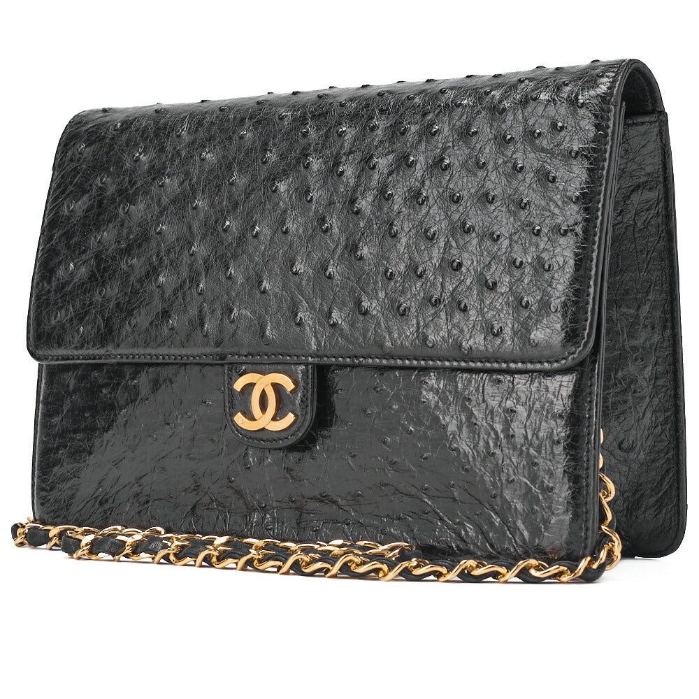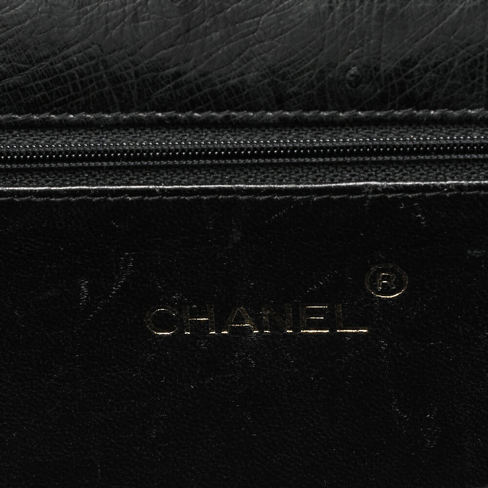 CHANEL Chain Shoulder Bag Matelassé Push Lock Ostrich Black Gold-Tone Hardware, Pre-Owned
